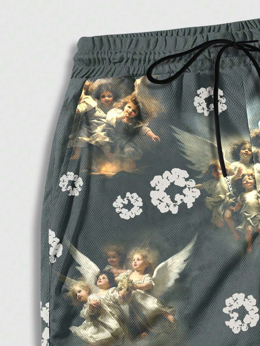 Street Life Pantaloncini da uomo a stampa angelica, con coulisse, 2 in 1