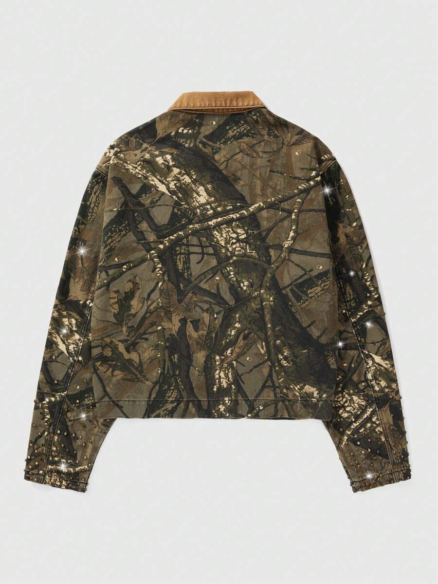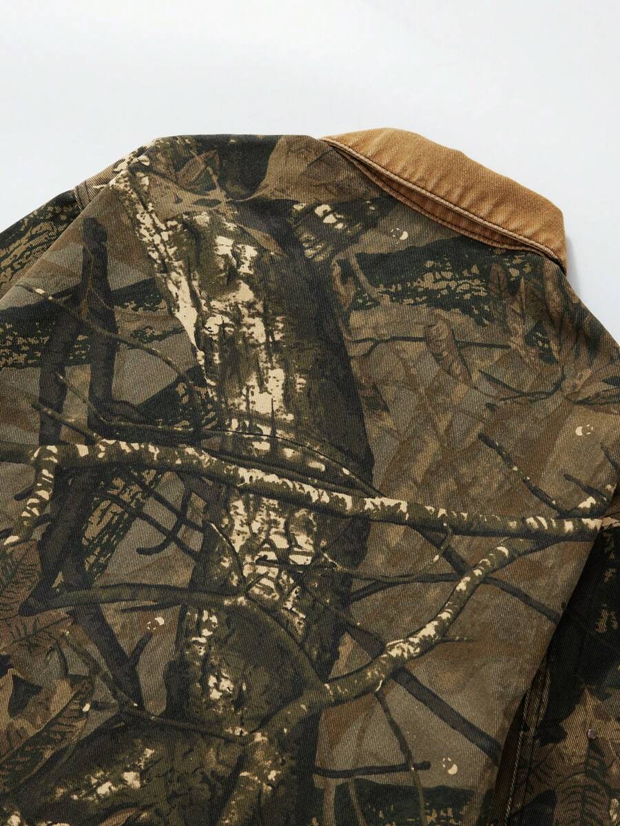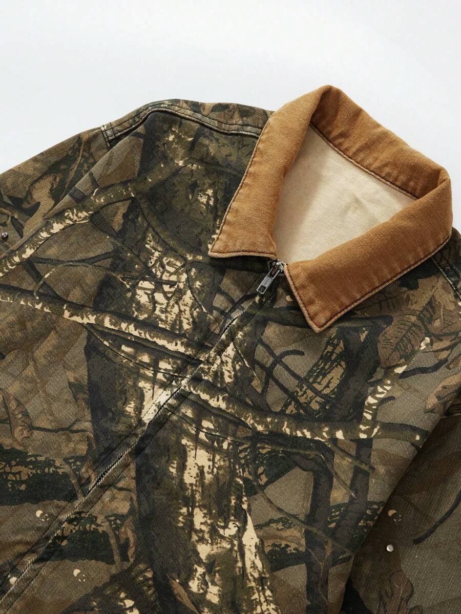 Street Life Giacca di jeans casual con chiusura lampo e motivo a rami autunnale da uomo