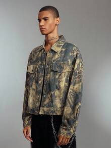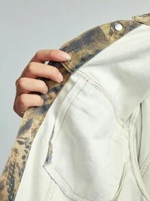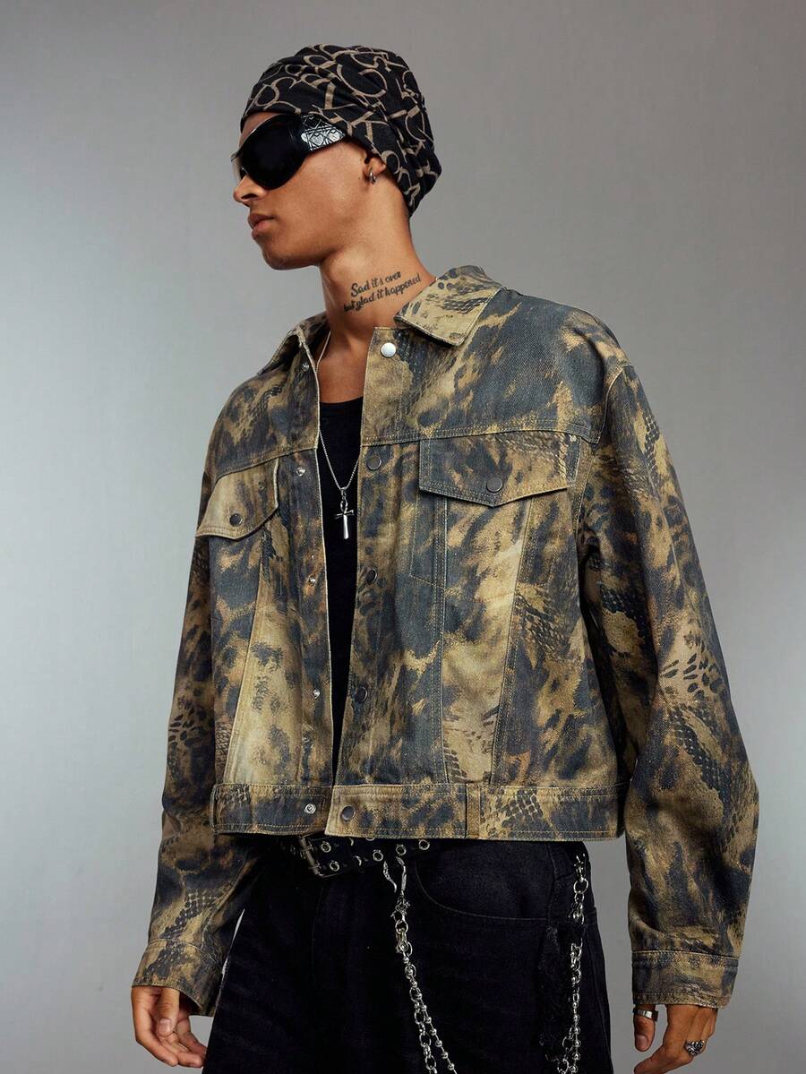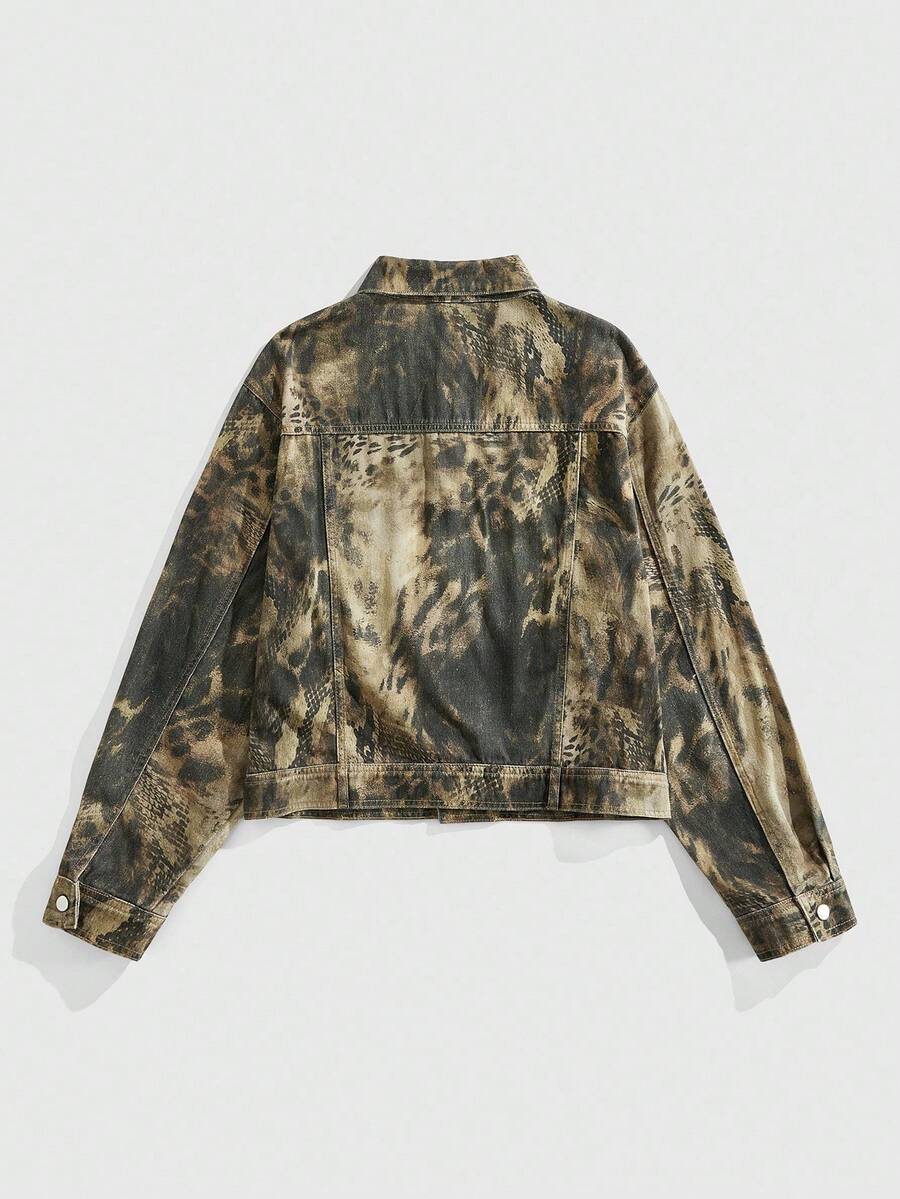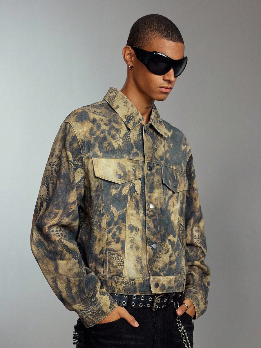 Street Life Giacca di jeans casual, monopetto, con stampa leopardata, per uomo, autunnale
