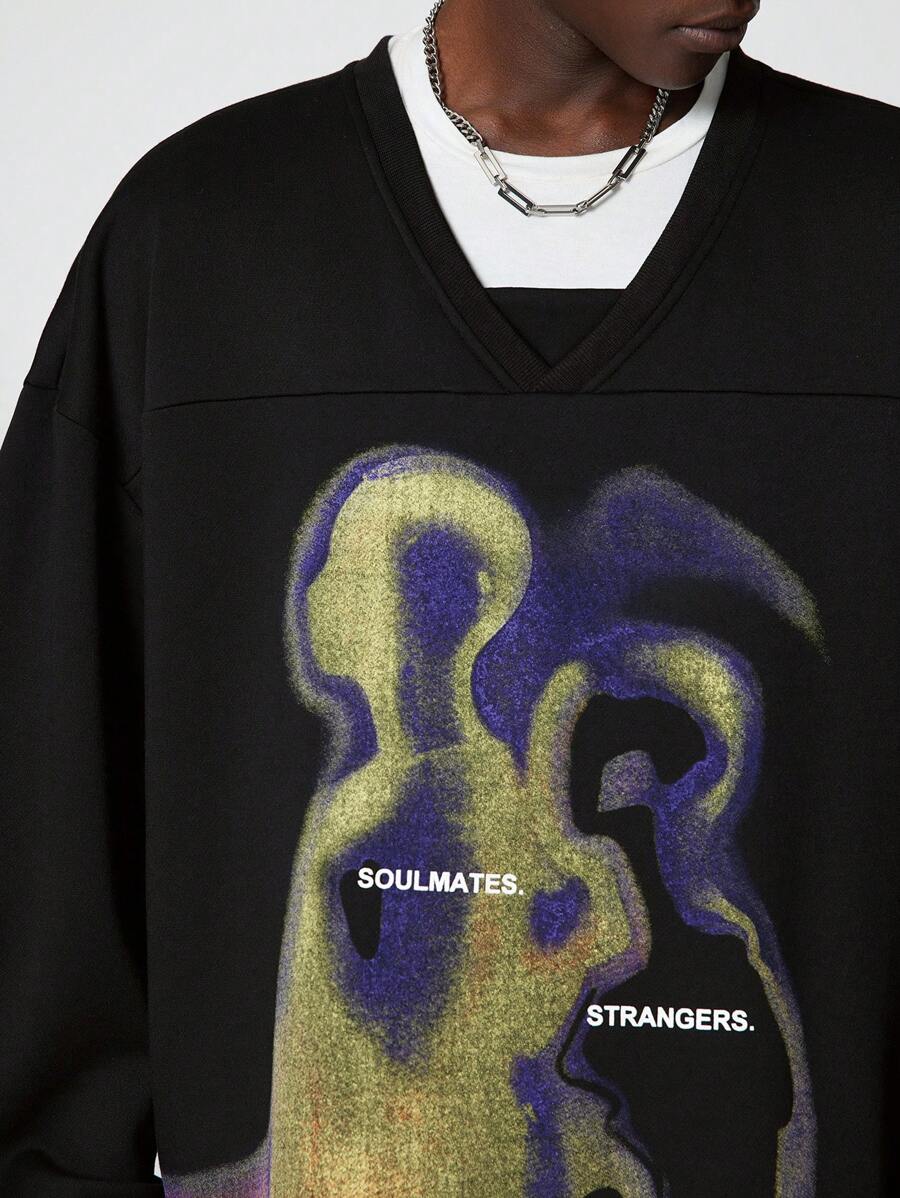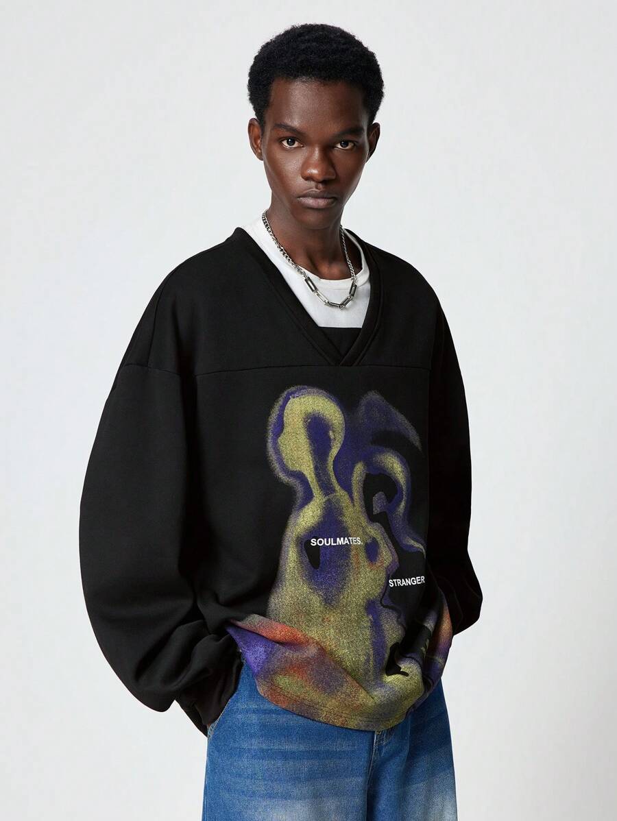 Street Life Felpa uomo a maniche lunghe con stampa grafica astratta e a lettera, adatta per l'autunno, stile streetwear