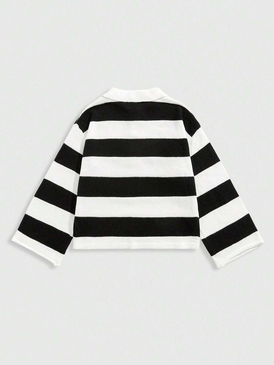 Street Life Maglione lavorato a maglia oversize con collo a polo, con ricamo a lettere e righe, per uomo, adatto per l'autunno