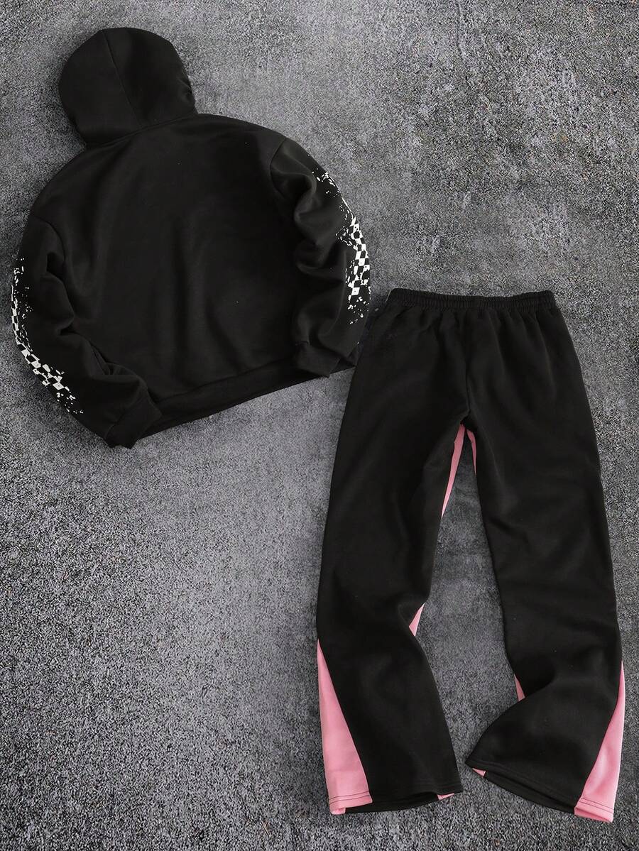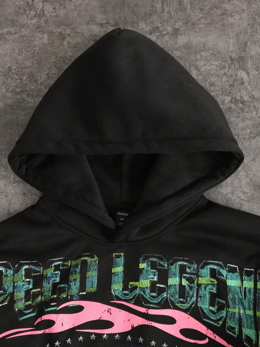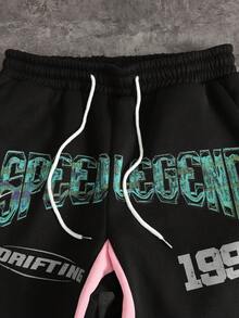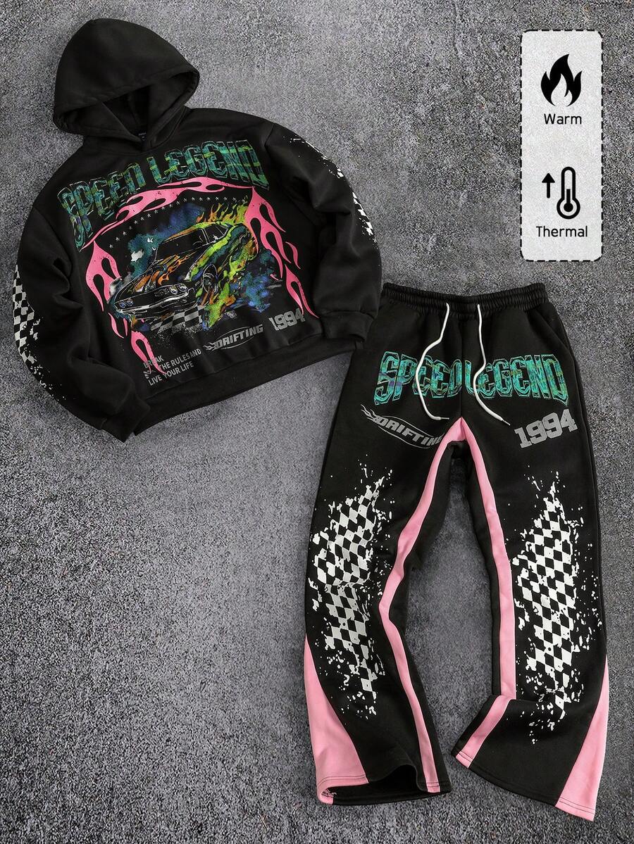 Street Life Set di felpa con cappuccio e pantaloni della tuta oversize con stampa di slogan e auto da corsa, abbigliamento casual da uomo per l'autunno