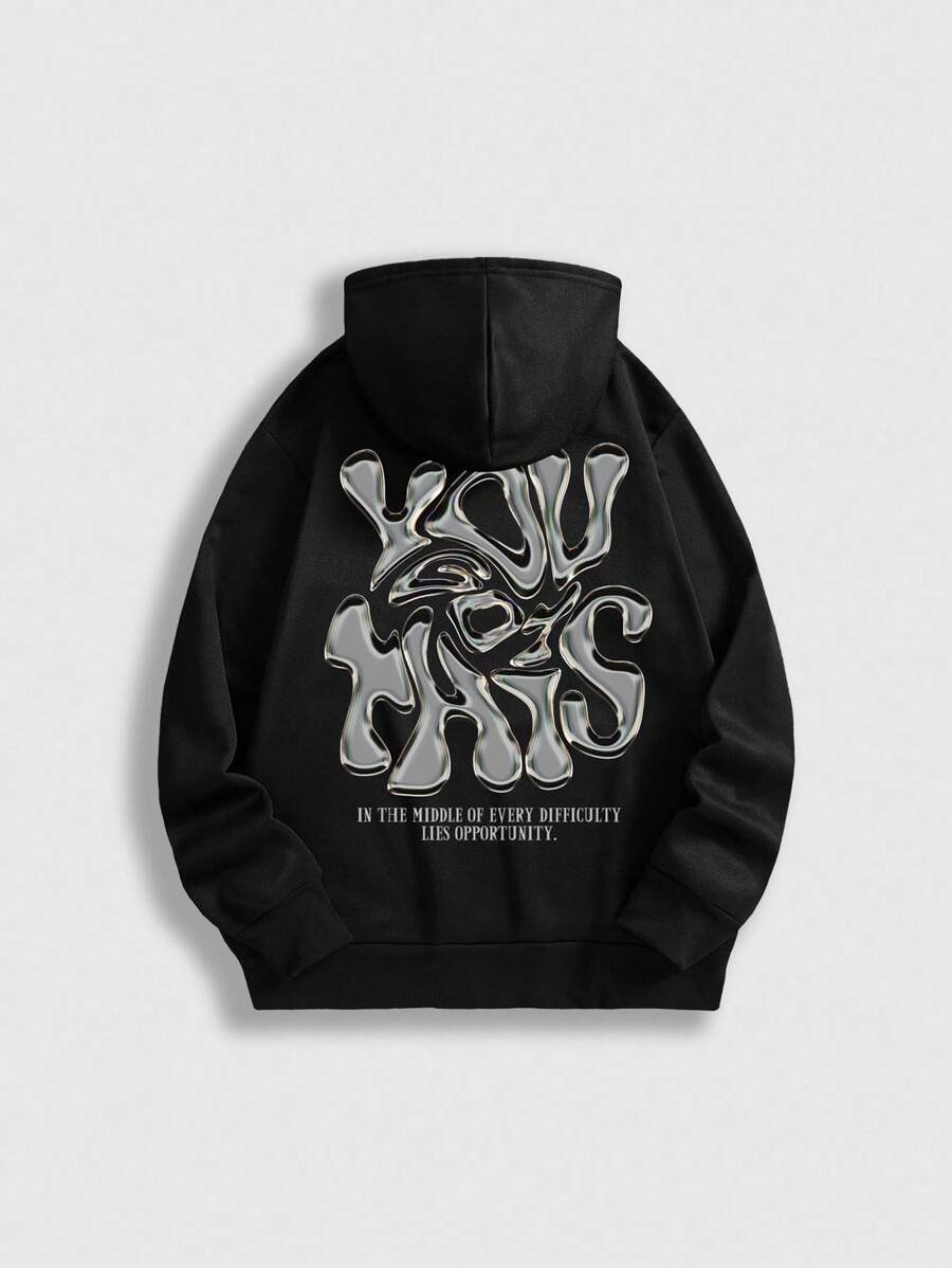 Street Life Felpa con cappuccio nera da uomo con lettere 3D liquefatte