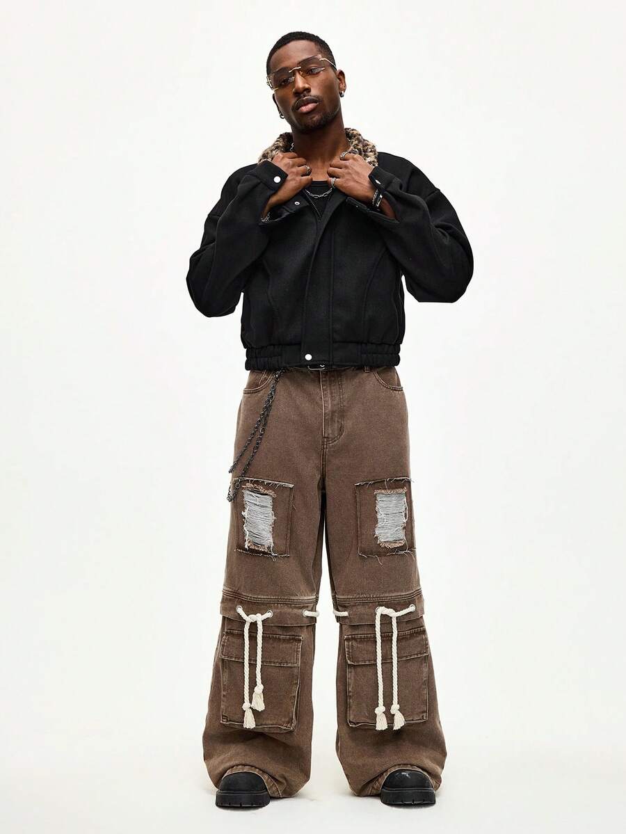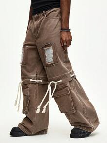 Street Life Jeans diritti con lacci e effetto consumato marrone per uomo