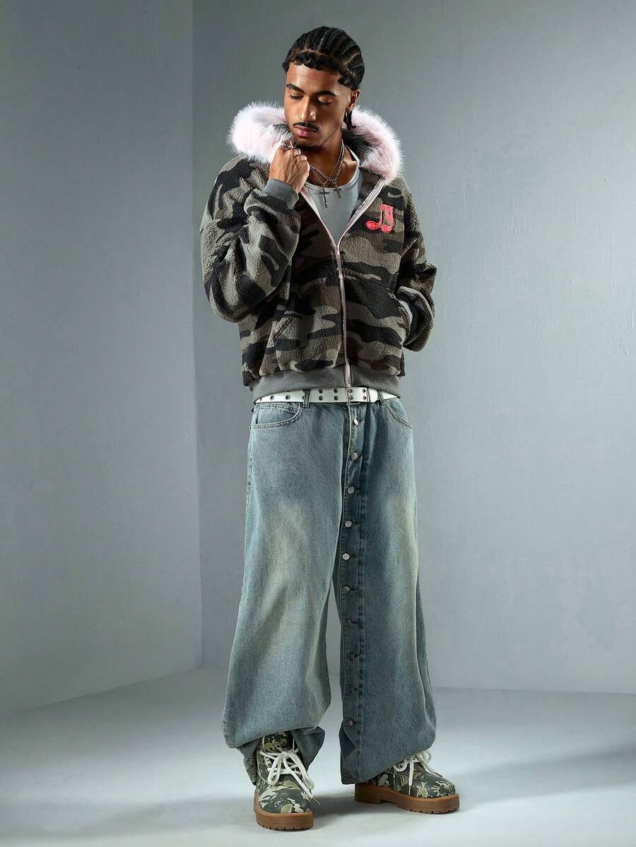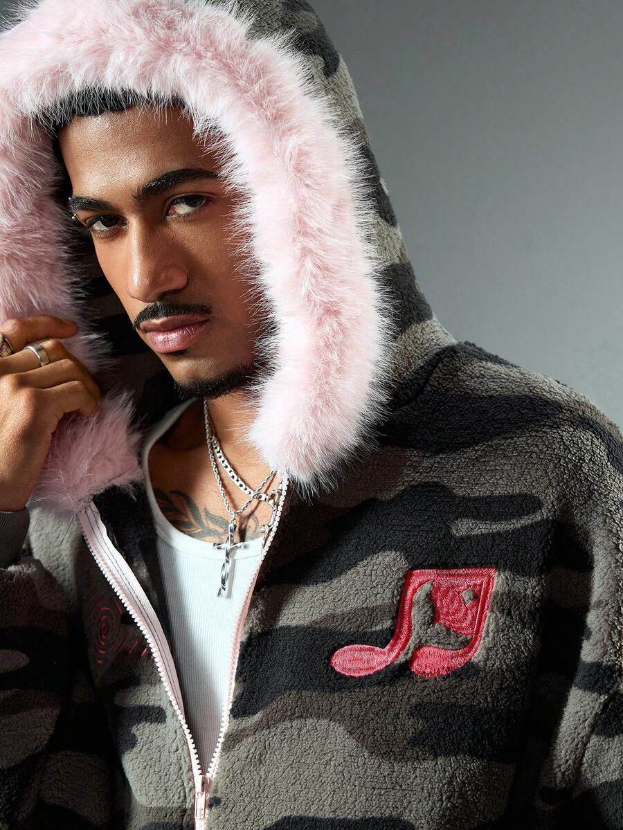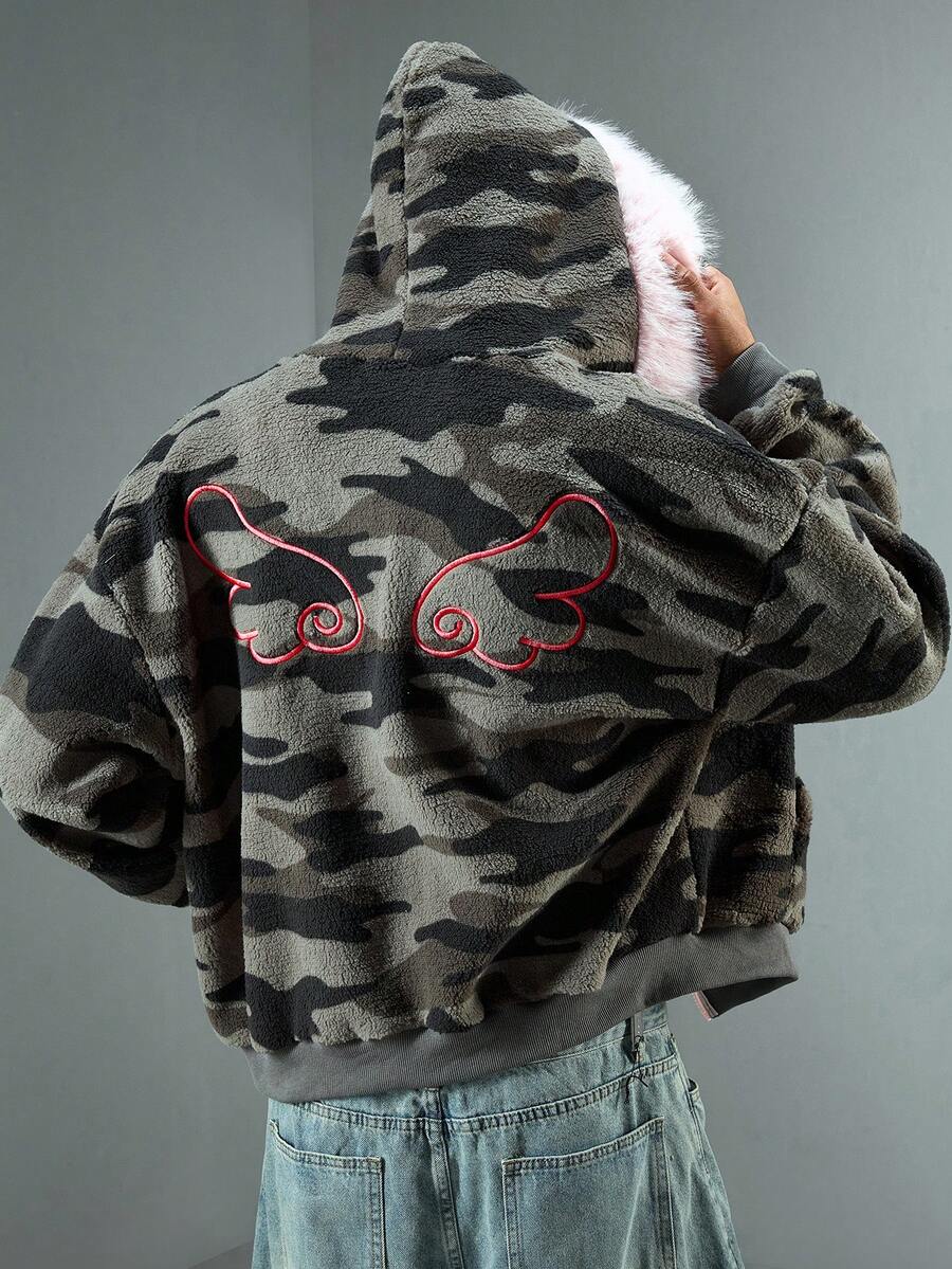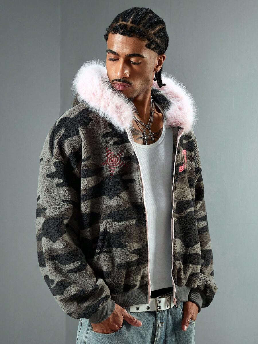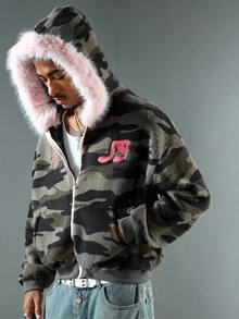 Street Life Felpa con cappuccio in pile con stampa mimetica da uomo, autunno/inverno