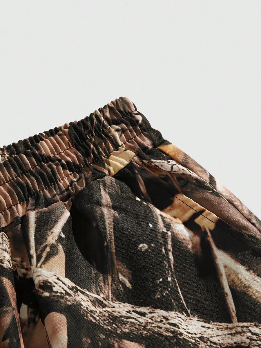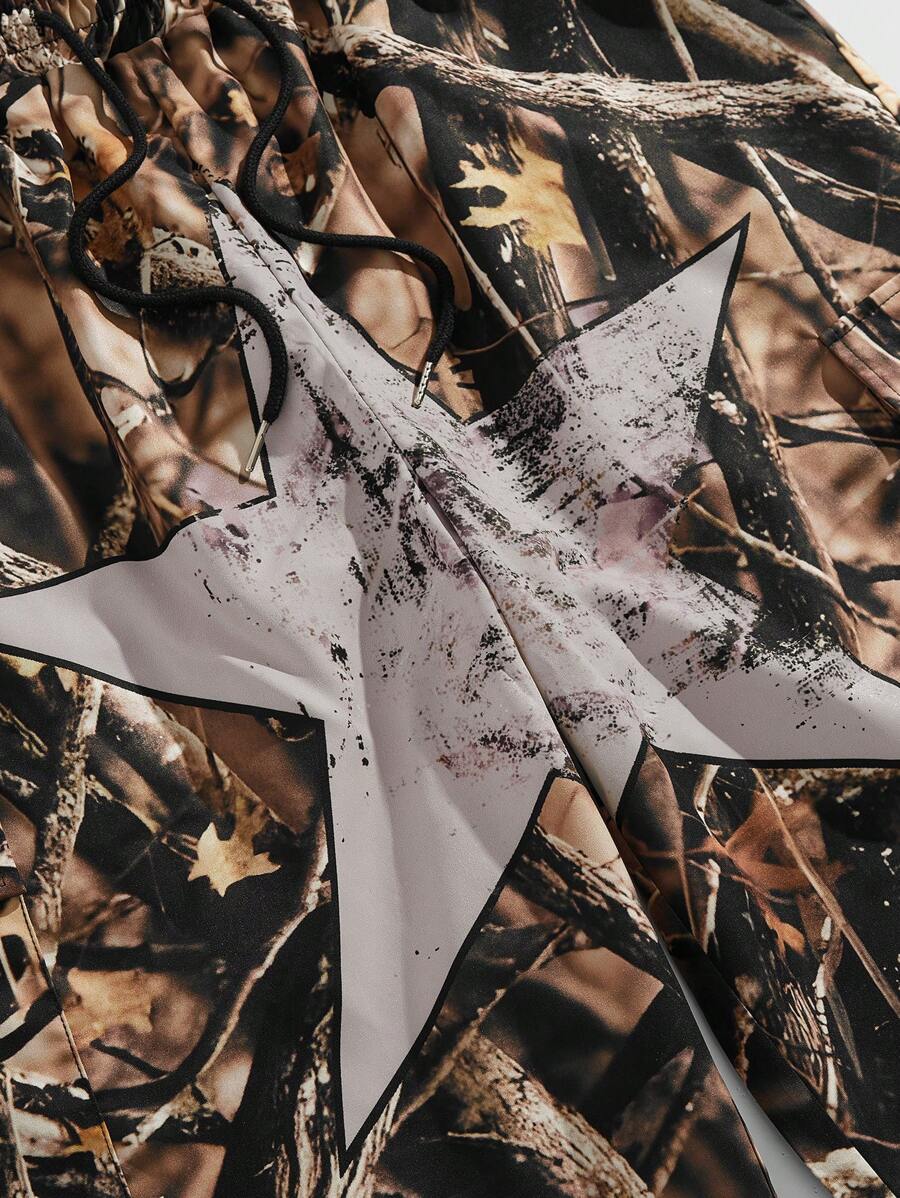 Street Life Pantaloni casual da uomo con stampa a rami secchi e stelle, con lacci frontali, in stile mimetico
