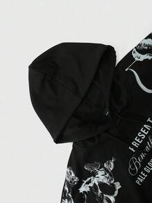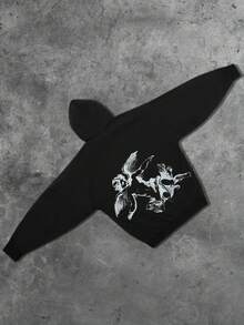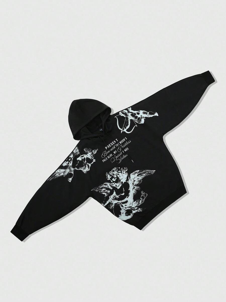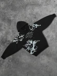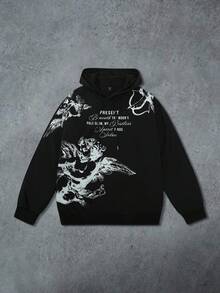 Street Life Felpa con cappuccio casual da uomo con stampa slogan dell'angelo, adatta per Ognissanti, autunno e inverno