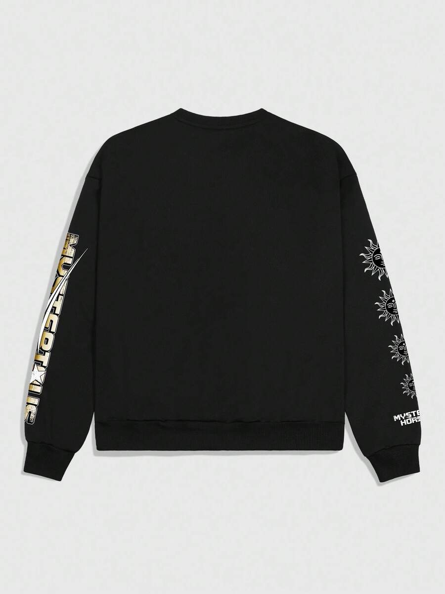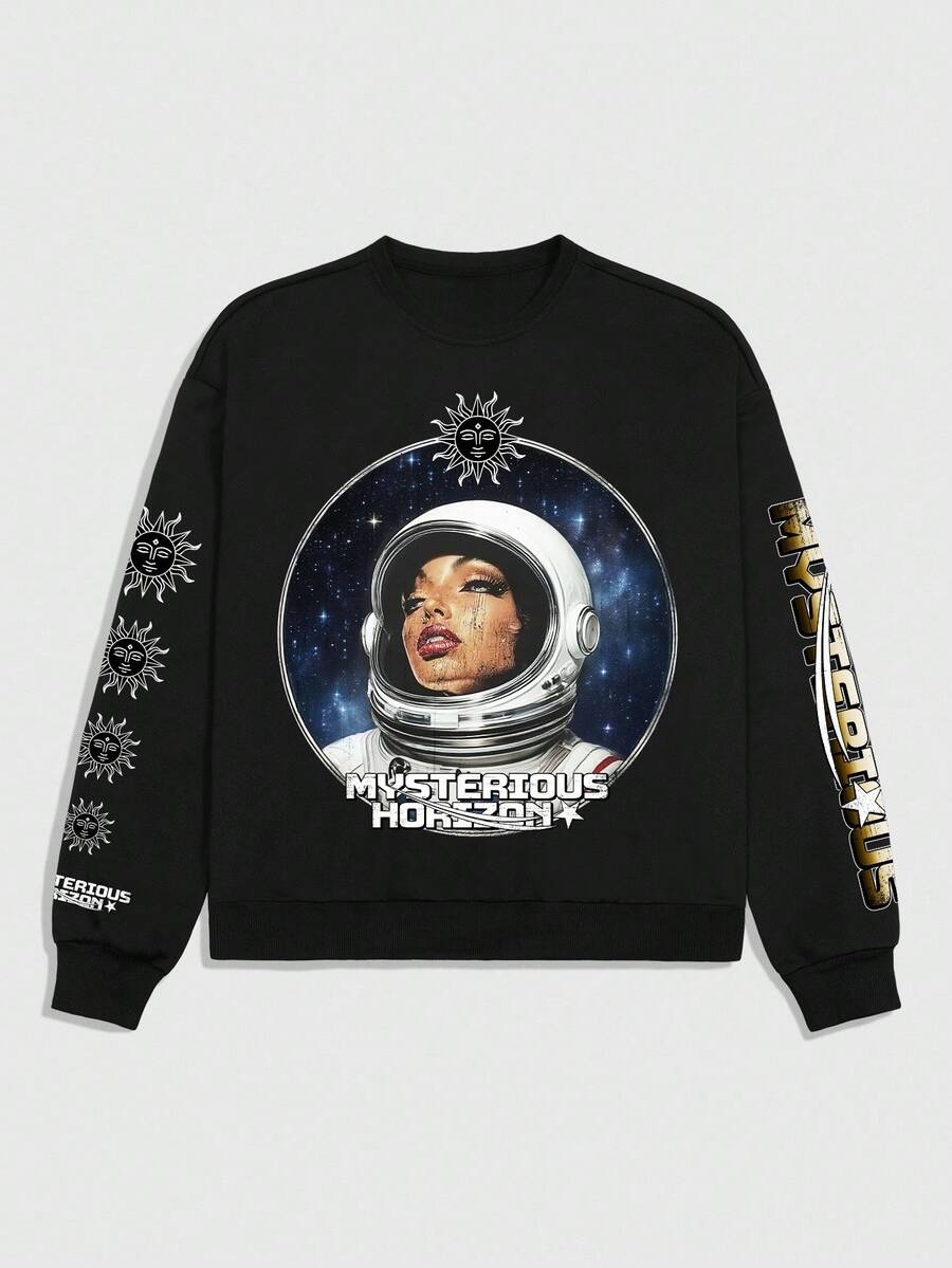 Street Life Felpa girocollo casual da uomo con stampa a lettere astronauta, autunnale