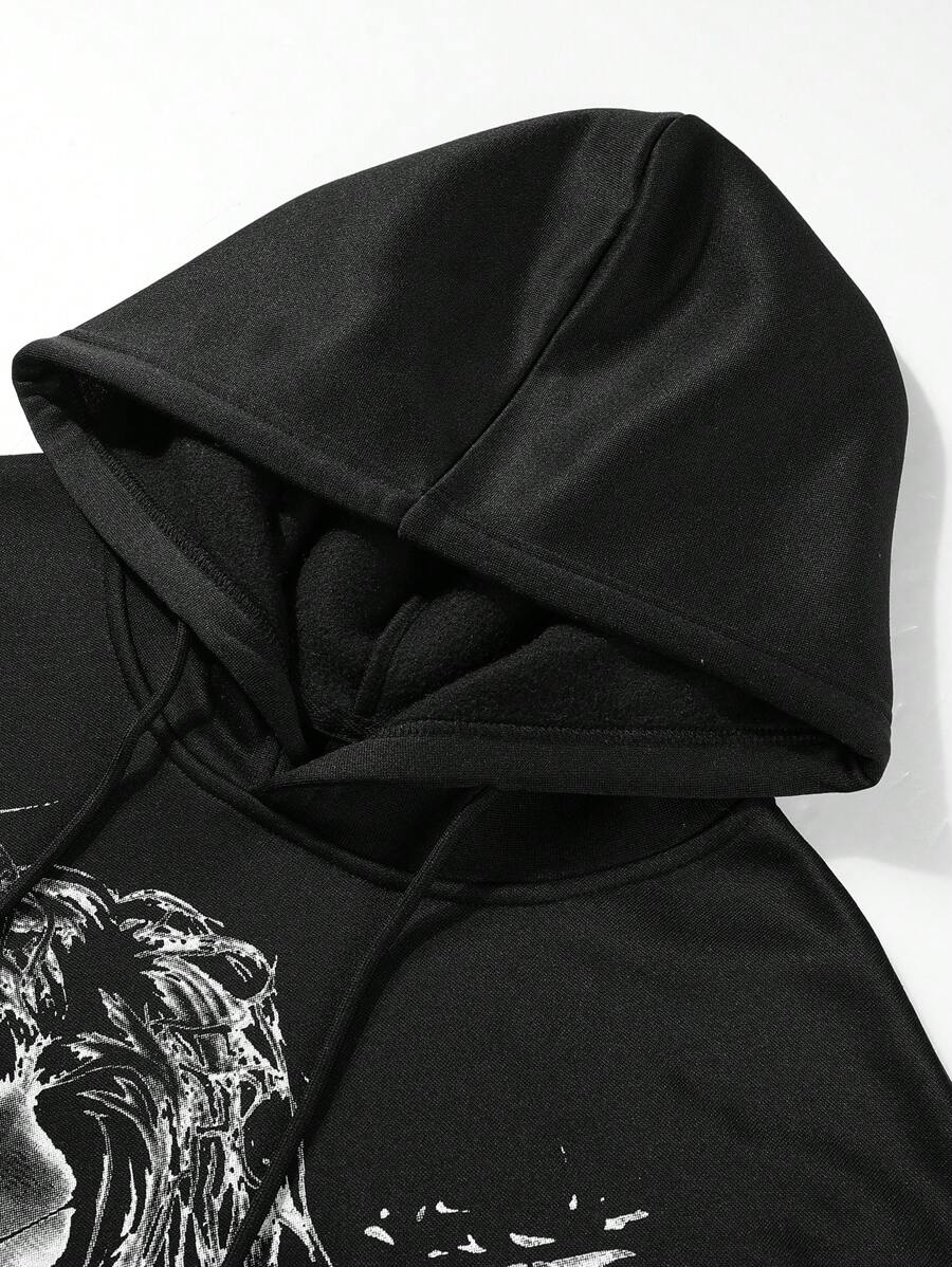 Street Life Felpa con cappuccio in pile con stampa casual di caratteri e lettere da uomo, autunno/inverno