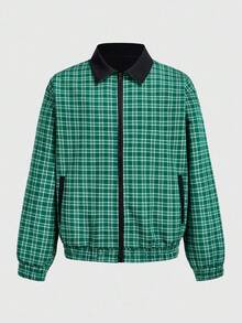 Street Life Giacca casual con chiusura lampo e motivo a quadri stile college, adatta per l'autunno