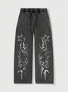 Street Life Pantaloni casual da uomo con stampa a stella, vita con laccio, gamba dritta