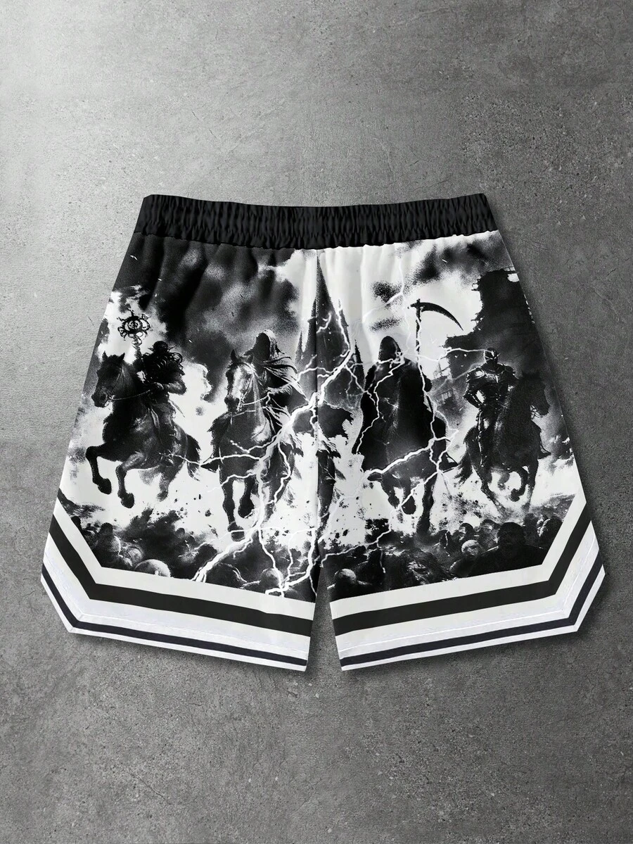 Street Life Pantaloncini casual larghi con stampa scura, estivi da uomo
