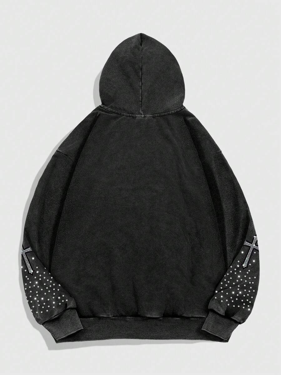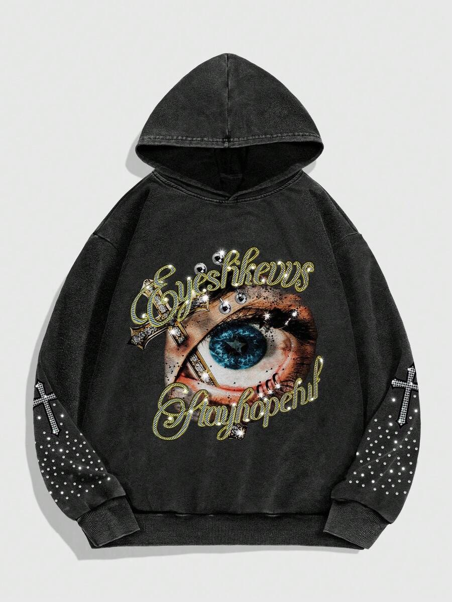 Street Life Felpa con cappuccio in pile casual da uomo con grafica ad occhio e lettera, autunnale