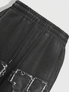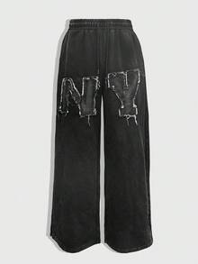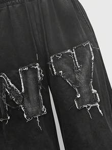 Street Life Pantaloni della tuta casual da uomo, stile di strada, con bordi grezzi, motivo a lettere, vita con coulisse, lavati, ampi e morbidi