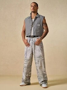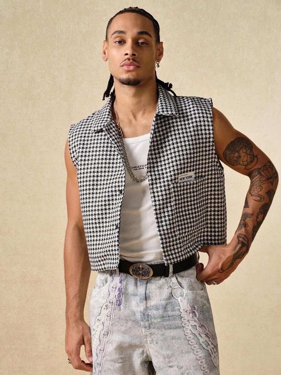 Street Life Gilet casual da uomo monopetto con motivo a spina di pesce e tasche, autunnale