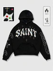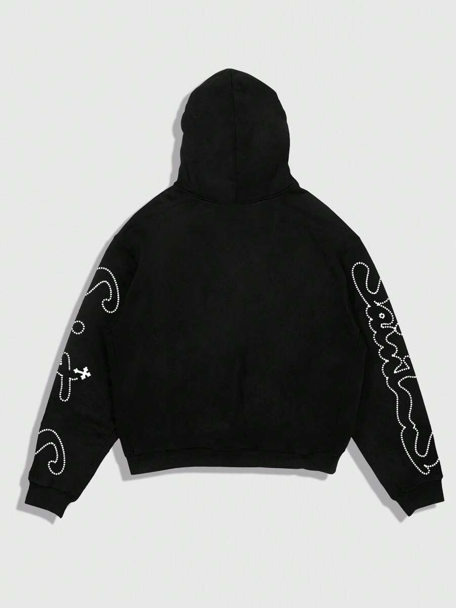 Street Life Felpa con cappuccio casual da uomo, stile punk da strada con ricamo pesante, autunno/inverno
