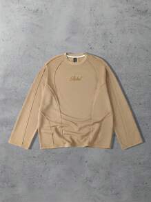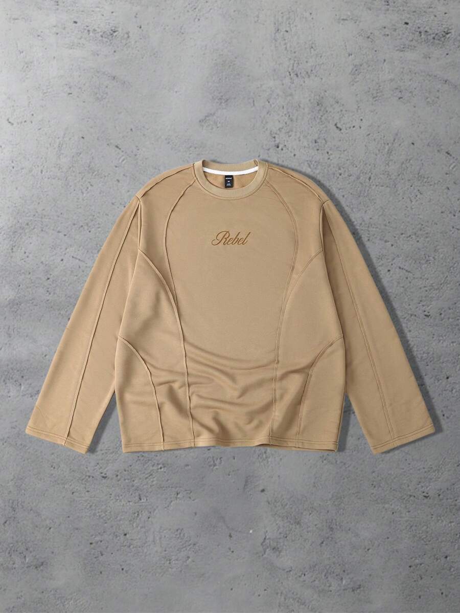 Street Life Maglietta casual da uomo a maniche lunghe, con stampa di lettere e patchwork, adatta per primavera/autunno
