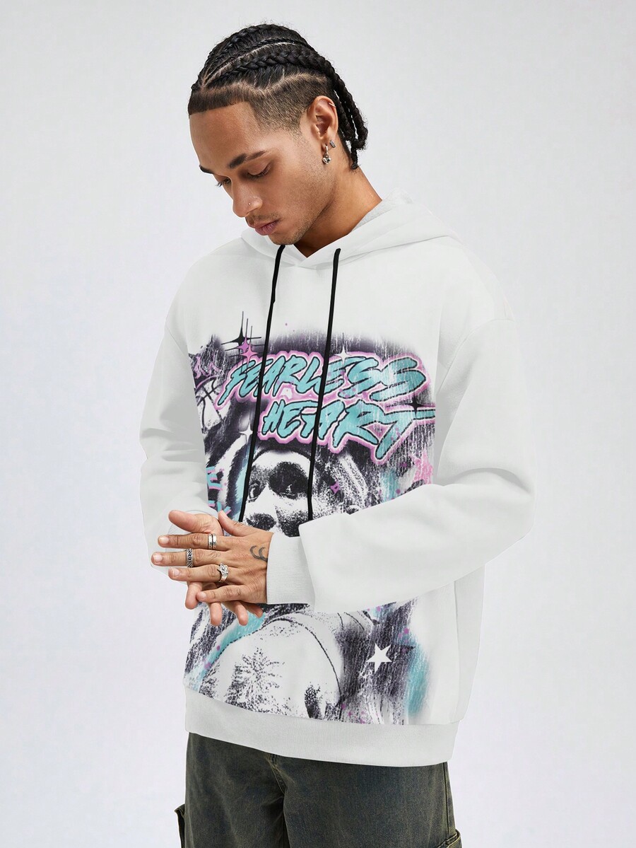 Street Life Felpa con cappuccio a maniche lunghe casual e larga da uomo con slogan e grafica, autunno