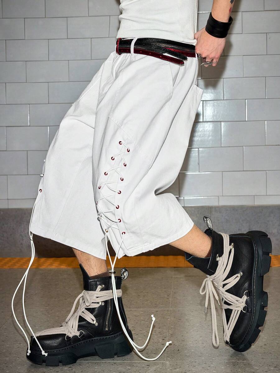 Street Life Pantaloncini bianchi casual e minimalisti da uomo con lacci, per uso quotidiano