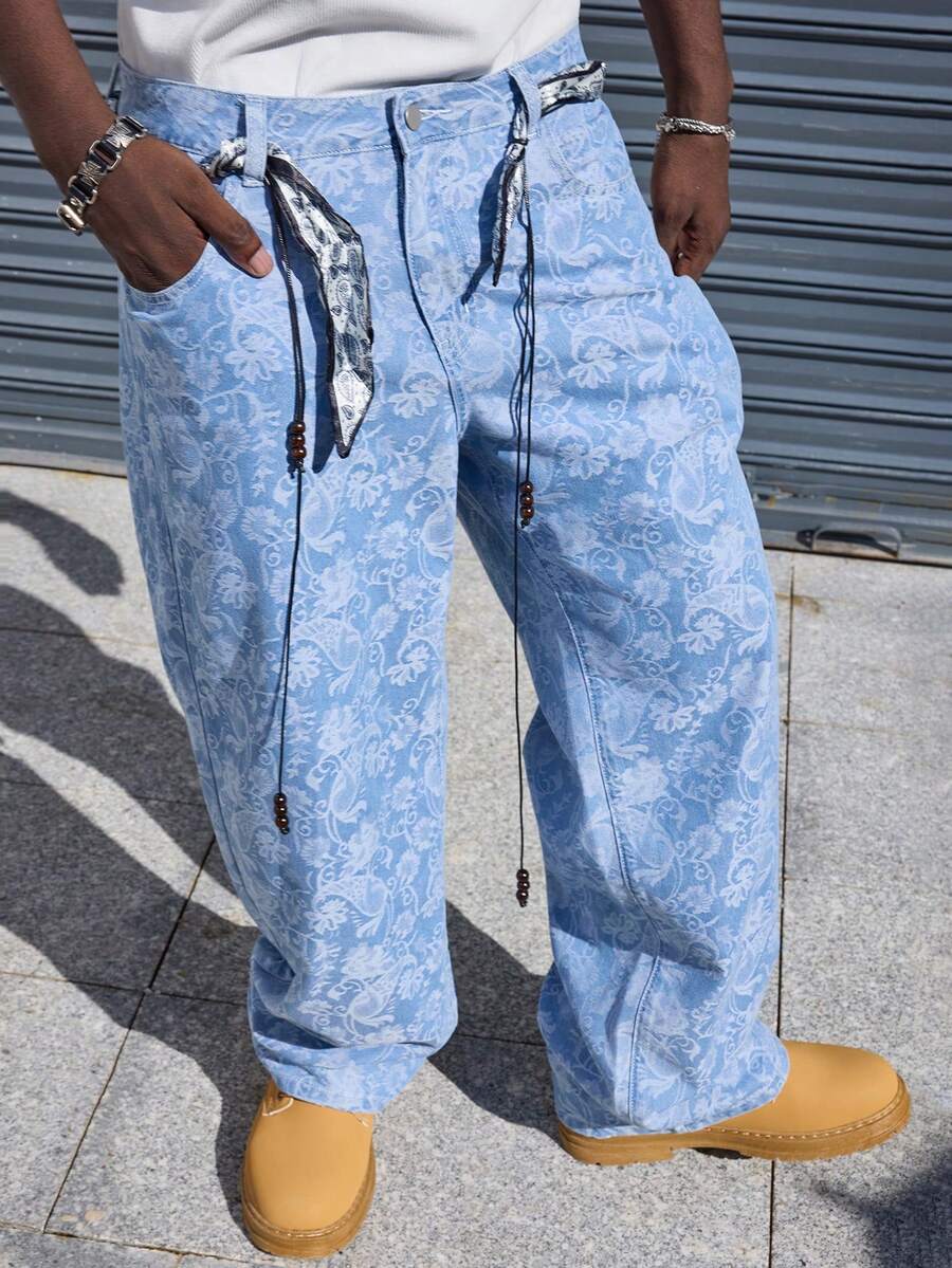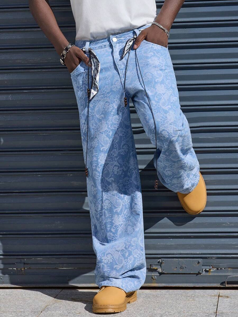 Street Life Calze casual in denim jacquard alla caviglia per uomo