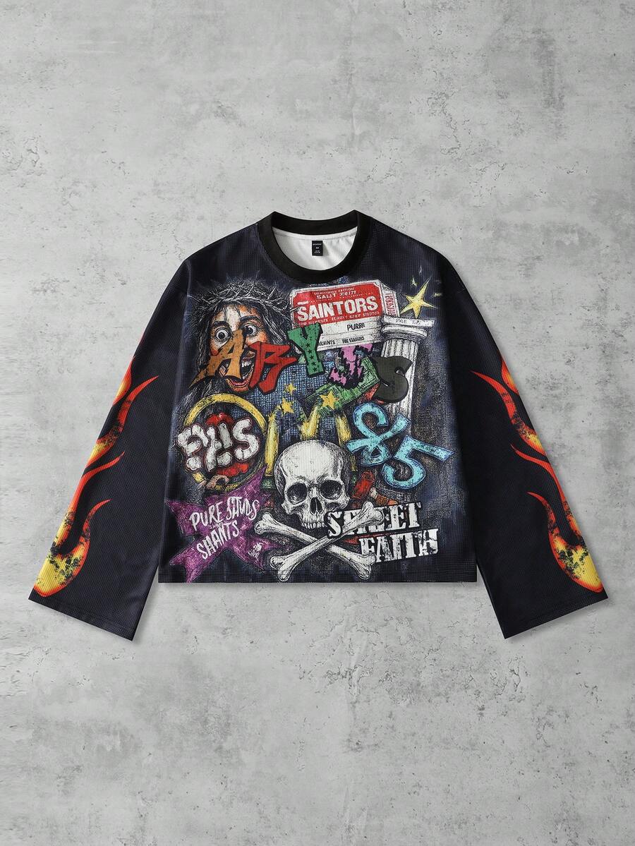 Street Life Maglietta casual da uomo a girocollo, manica lunga, con stampe alla moda, stile retrò da strada