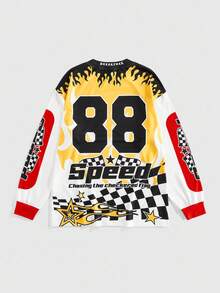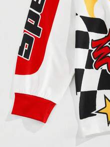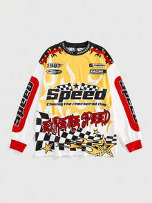 Street Life Maglietta casual da uomo a maniche lunghe con scollo tondo, con stampa di lettere e motivo a scacchi, adatta per l'autunno