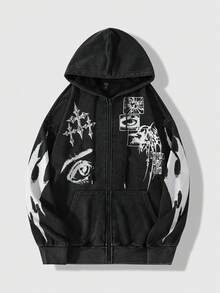 Street Life Felpa casual da uomo con zip e motivo a fiocchi di neve, adatta per uso quotidiano, scuola, autunno