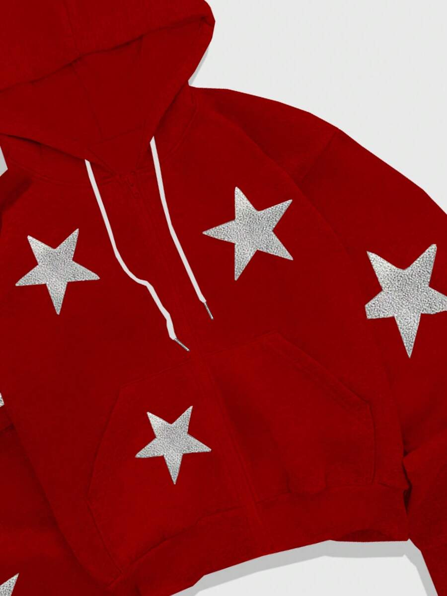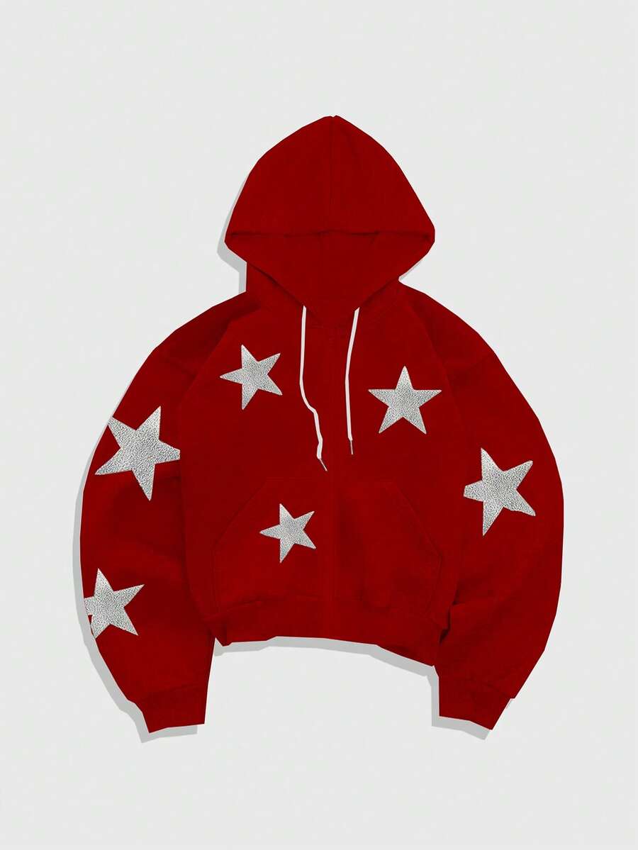 Street Life Felpa con cappuccio casual da uomo con stampa a stelle e tasche con laccetti, autunnale