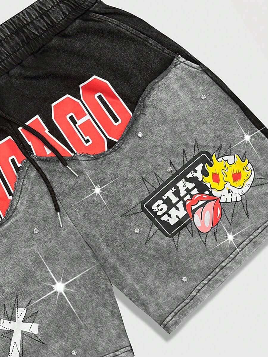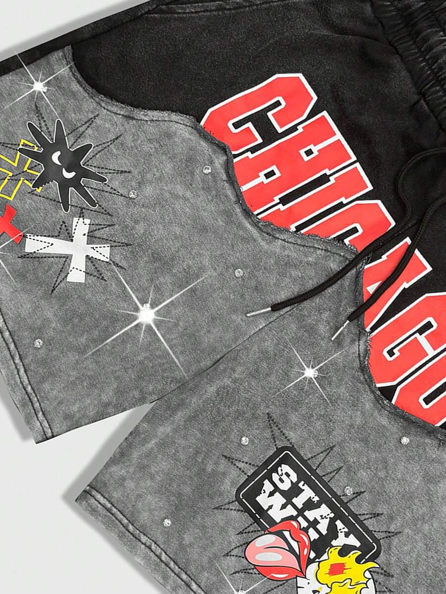 Street Life Pantaloncini casual da uomo con stampa a lettera e coulisse in vita