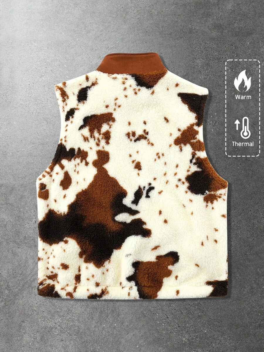 Gilet casual da uomo in stile urban, con texture in pelle di mucca americana e inserti in pile, adatto per l'autunno/inverno