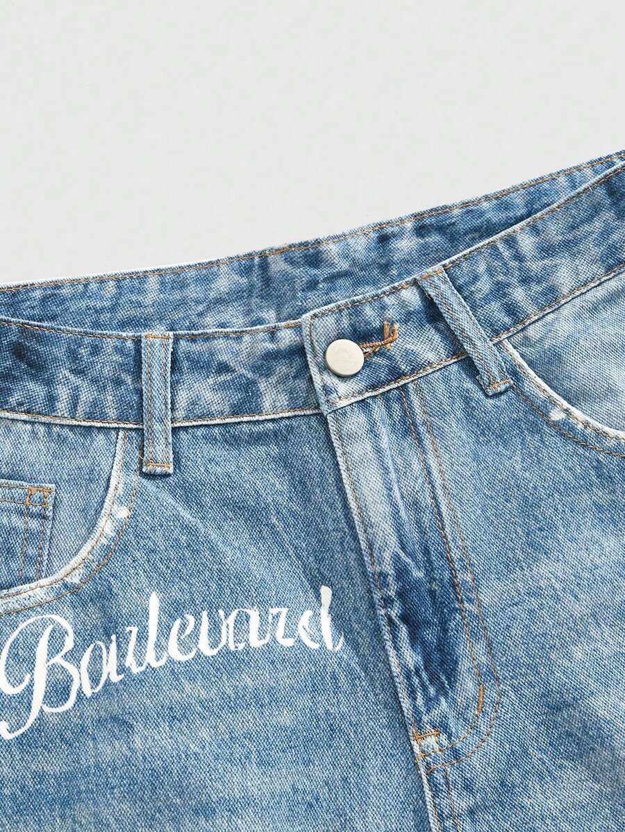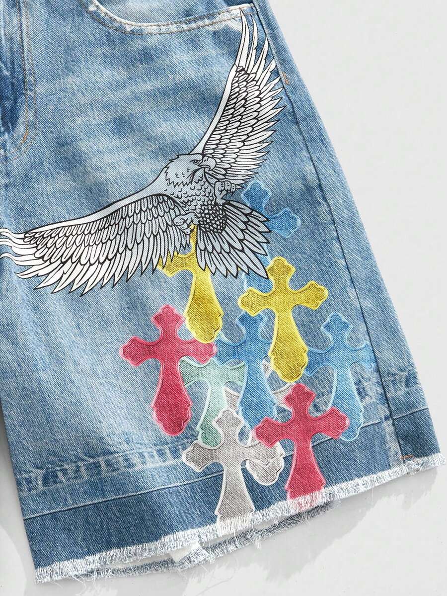 Street Life Pantaloncini di jeans casual da uomo con stampa e tasche