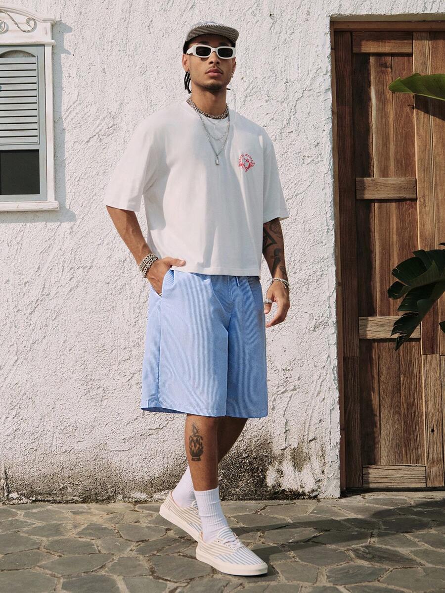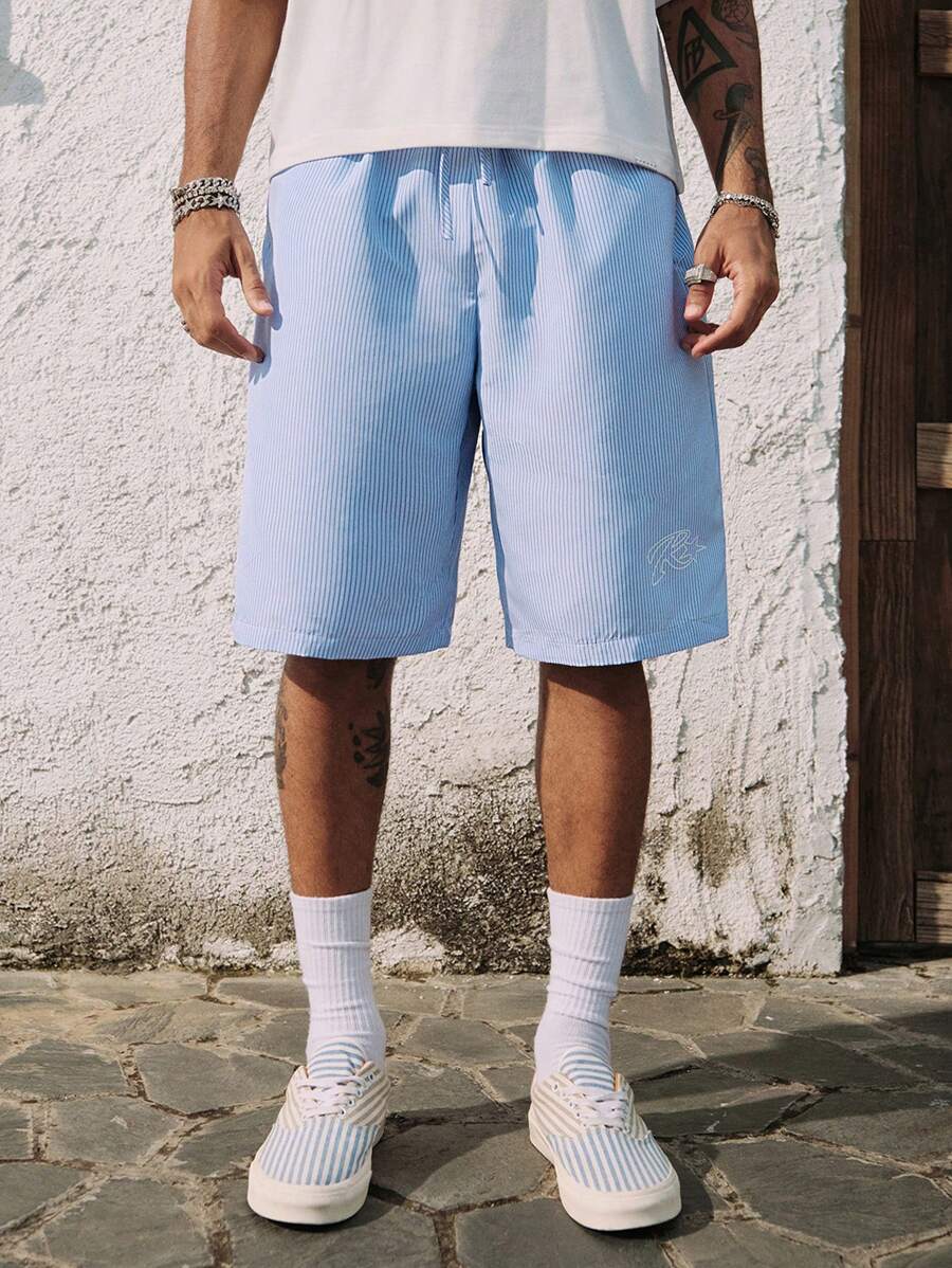 Street Life Pantaloncini casual da uomo con vita con coulisse e righe, estivi