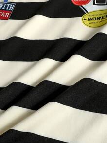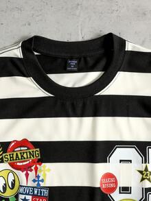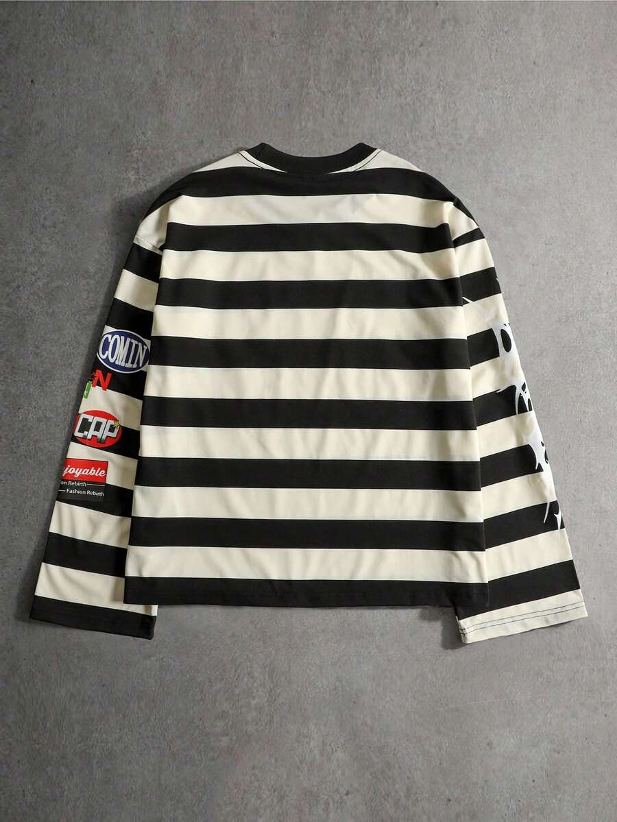 Street Life Maglietta a maniche lunghe casual da uomo con stampa a righe e lettera