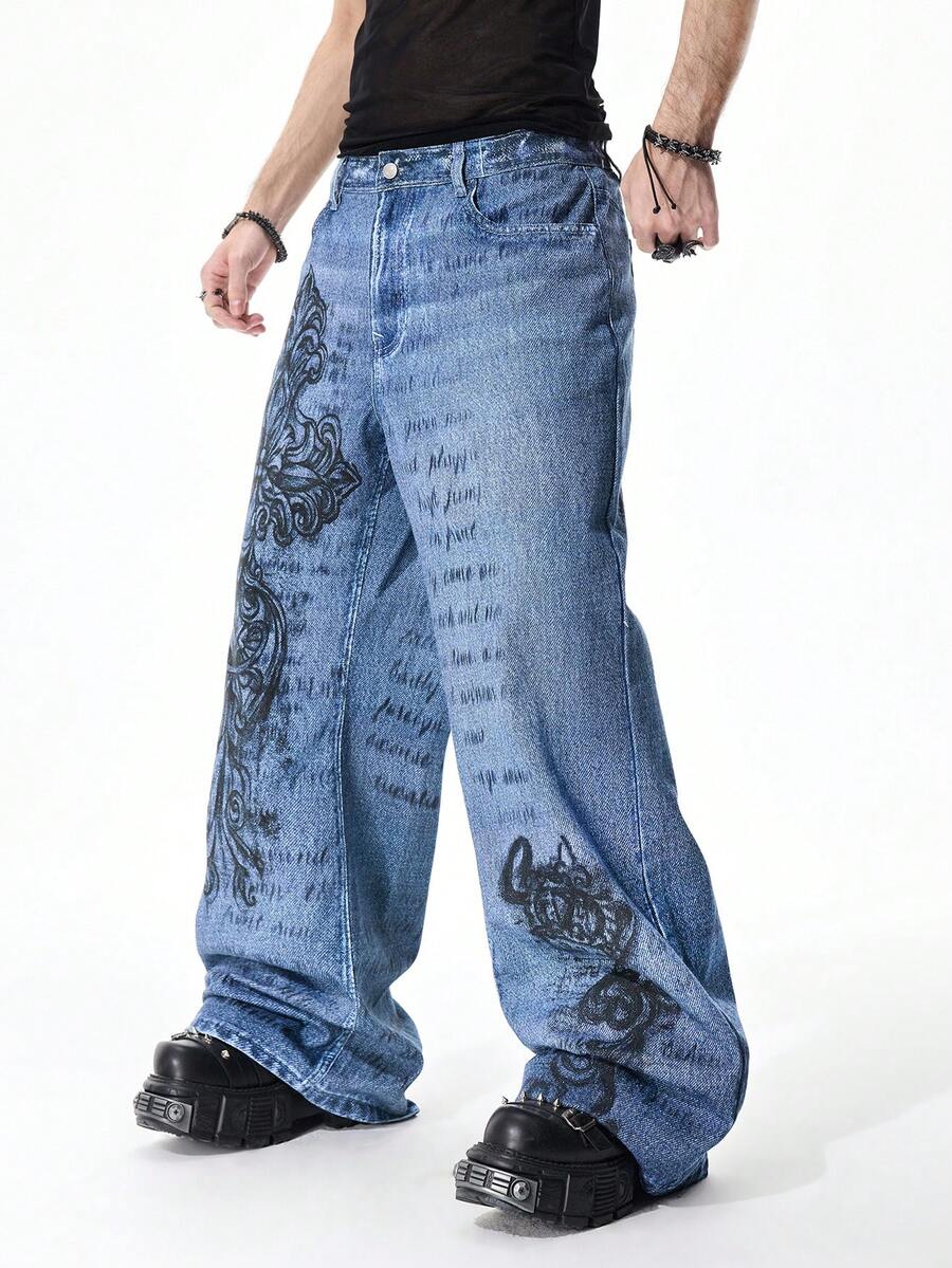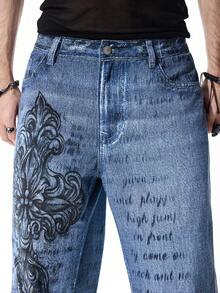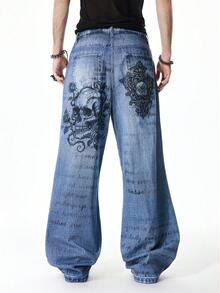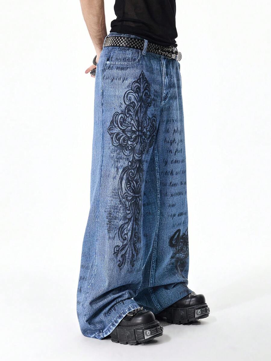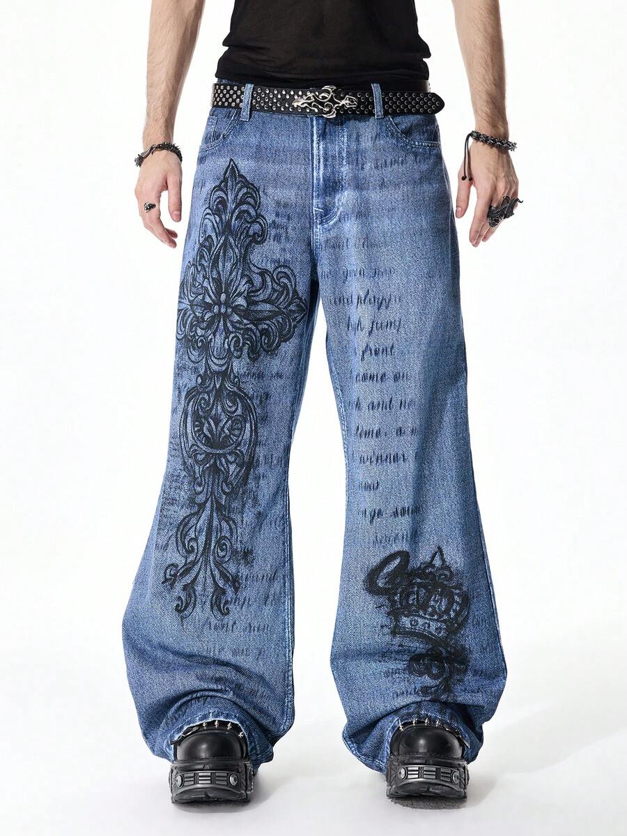 Street Life Jeans casual da uomo in denim lavato con stampa del logo a croce