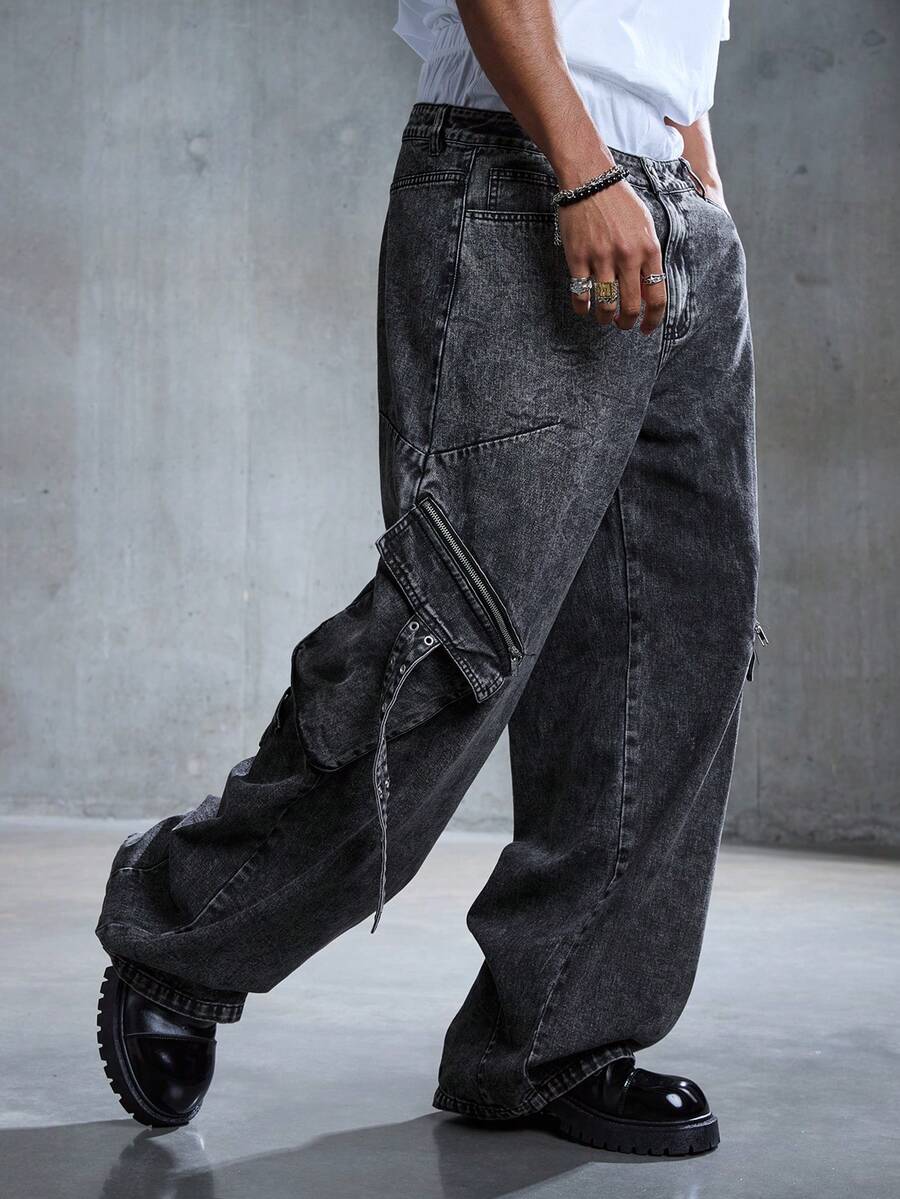 Street Life Jeans cargo casual da uomo lavati e consumati