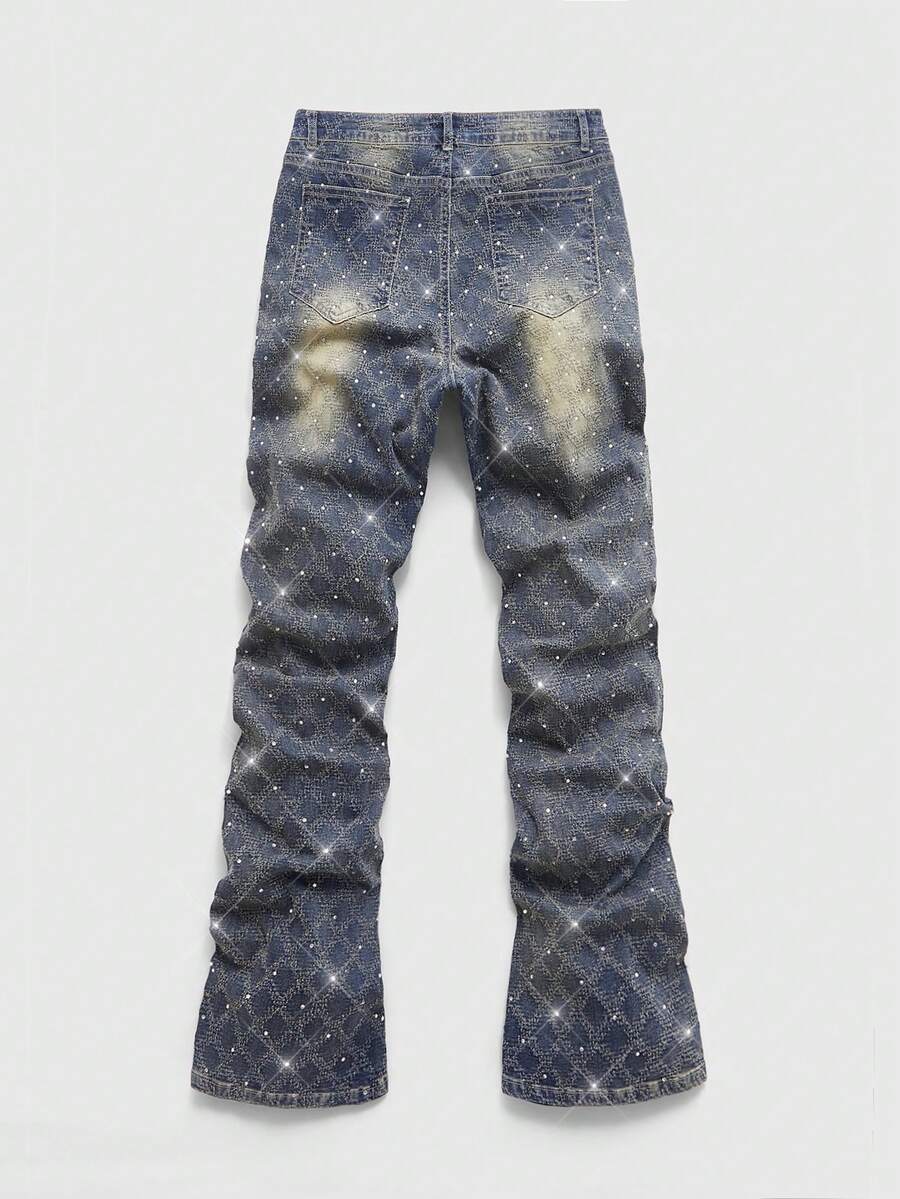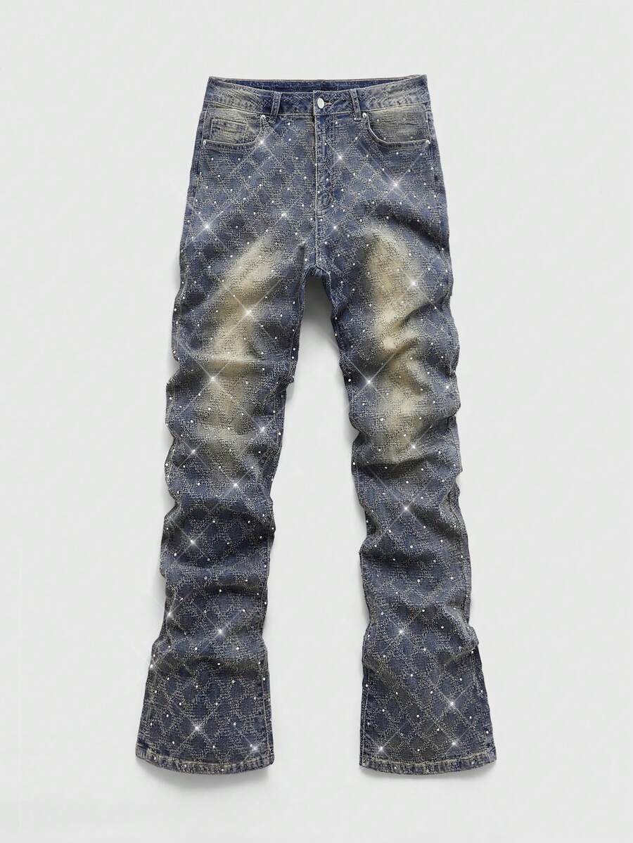 Street Life Jeans casual da uomo lavati e consumati con applicazioni di strass