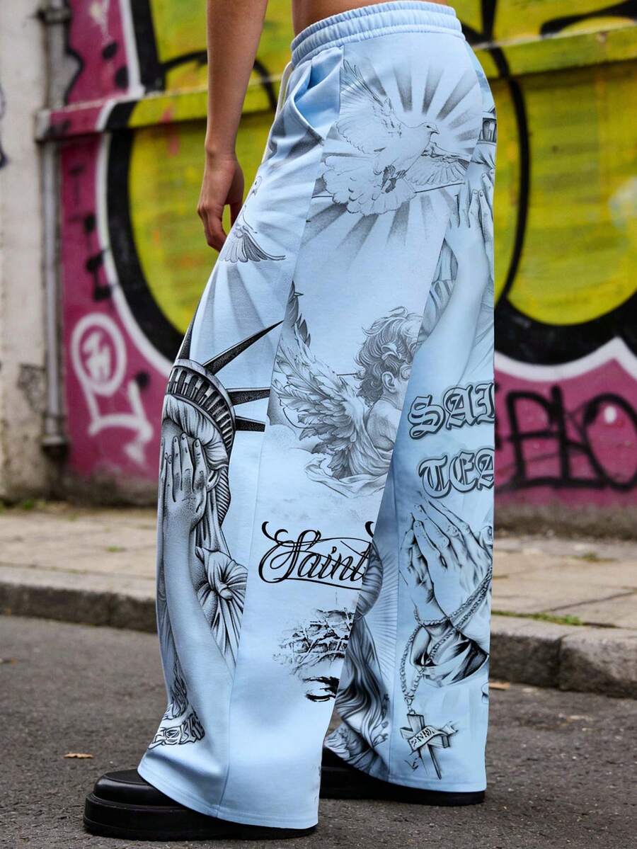 Street Life Pantaloni casual da uomo a gamba ampia, pantaloni della tuta con vita con cordoncino per autunno/inverno