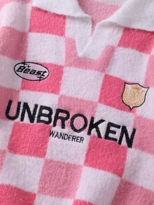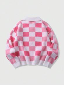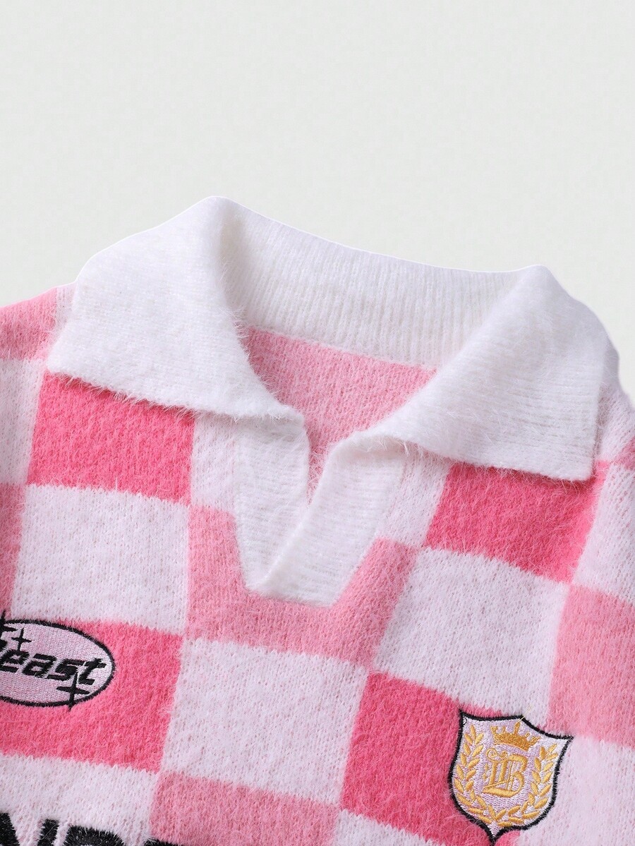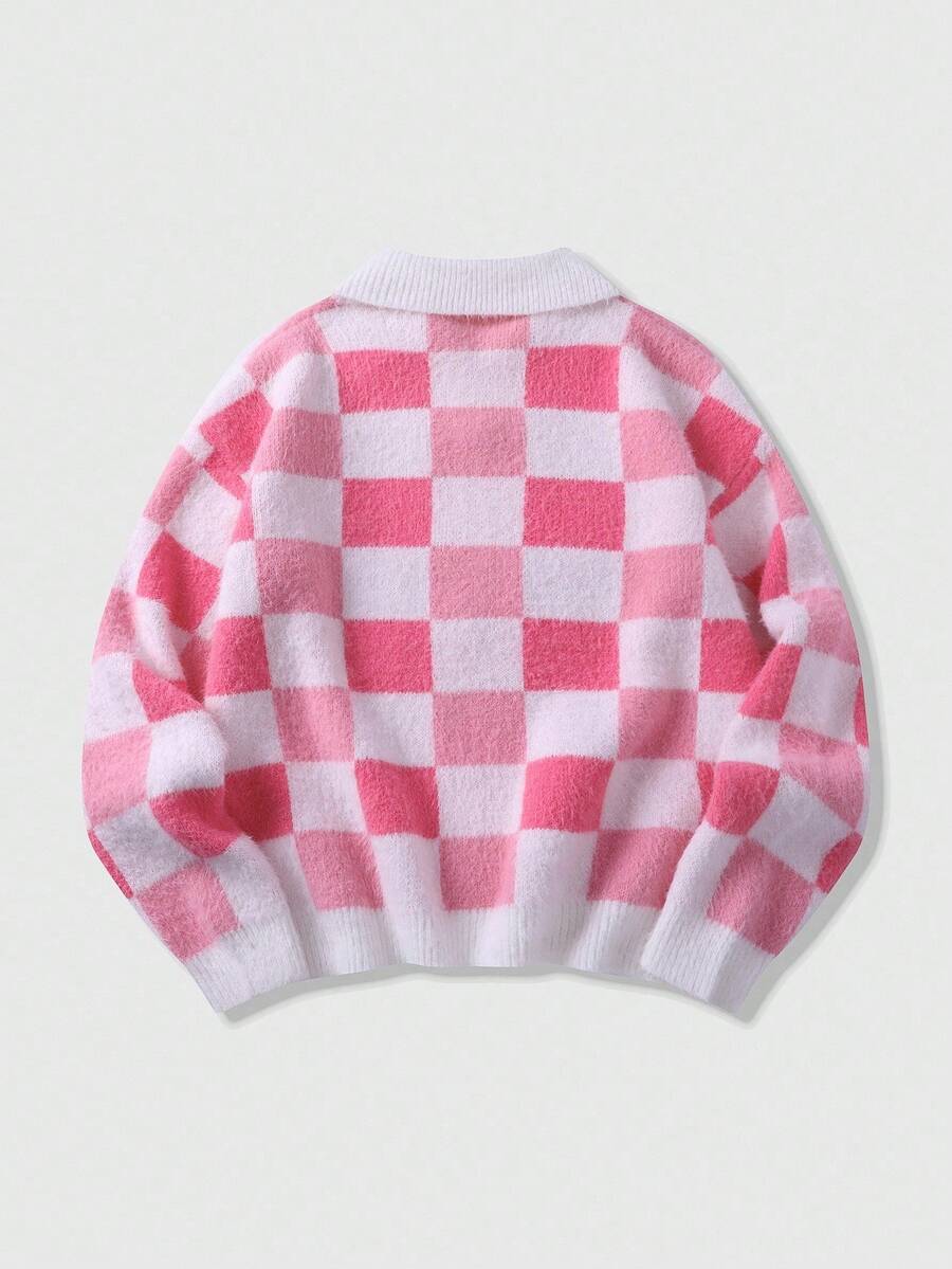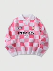 Street Life Maglione oversize a maniche lunghe da uomo con ricamo a scacchiera, adatto per l'autunno e l'inverno