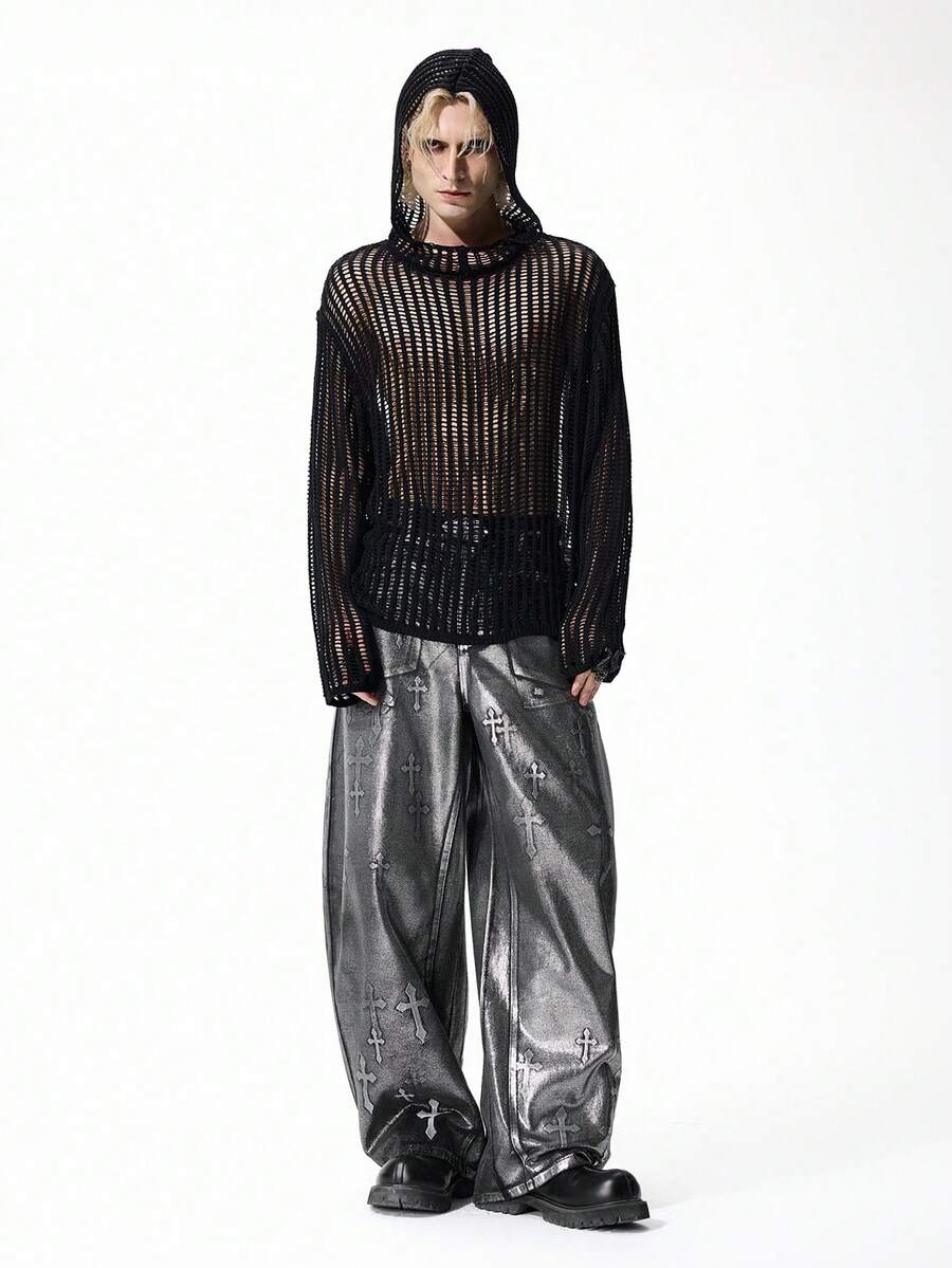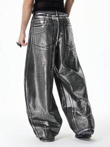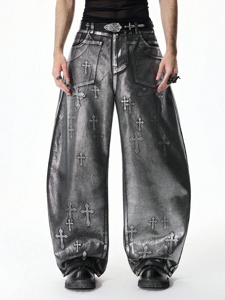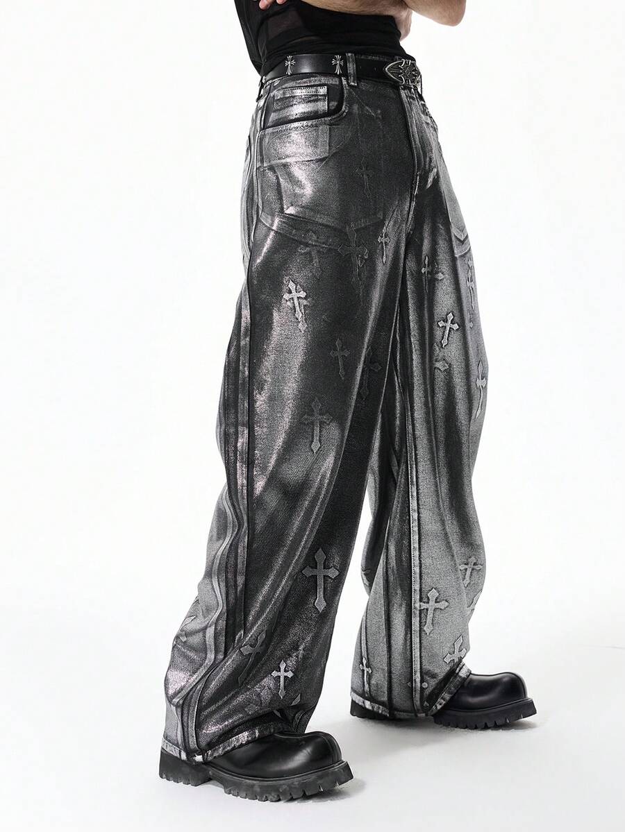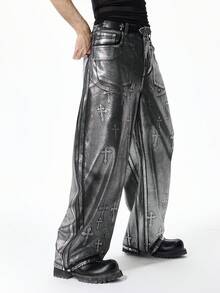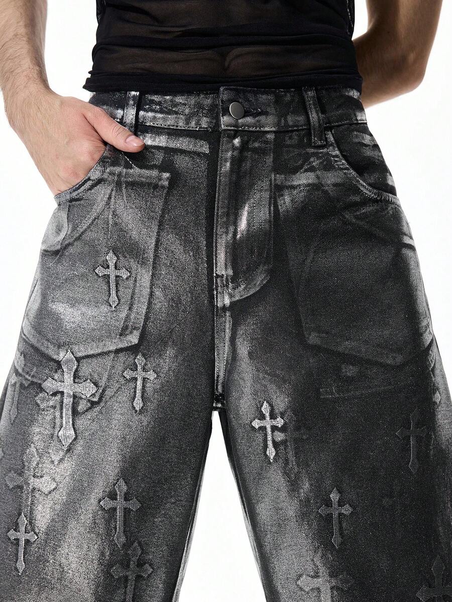 Street Life Jeans ampi con gamba a zampa e stampa a croce rivestita, da uomo