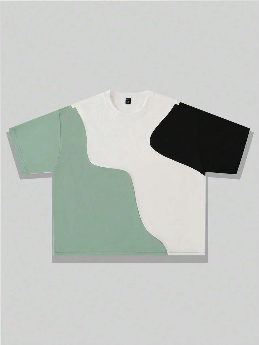 Casual T-shirt da uomo con patchwork a colori a contrasto, stile corto e morbido