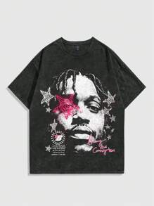 Street Life Maglietta a manica corta con stampa angelica in cotone da uomo, adatta per la primavera e l'estate