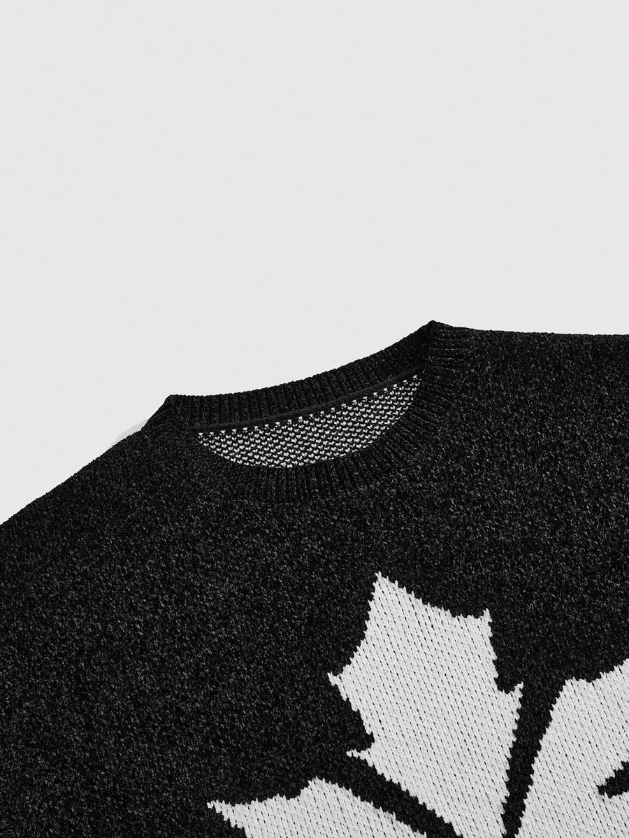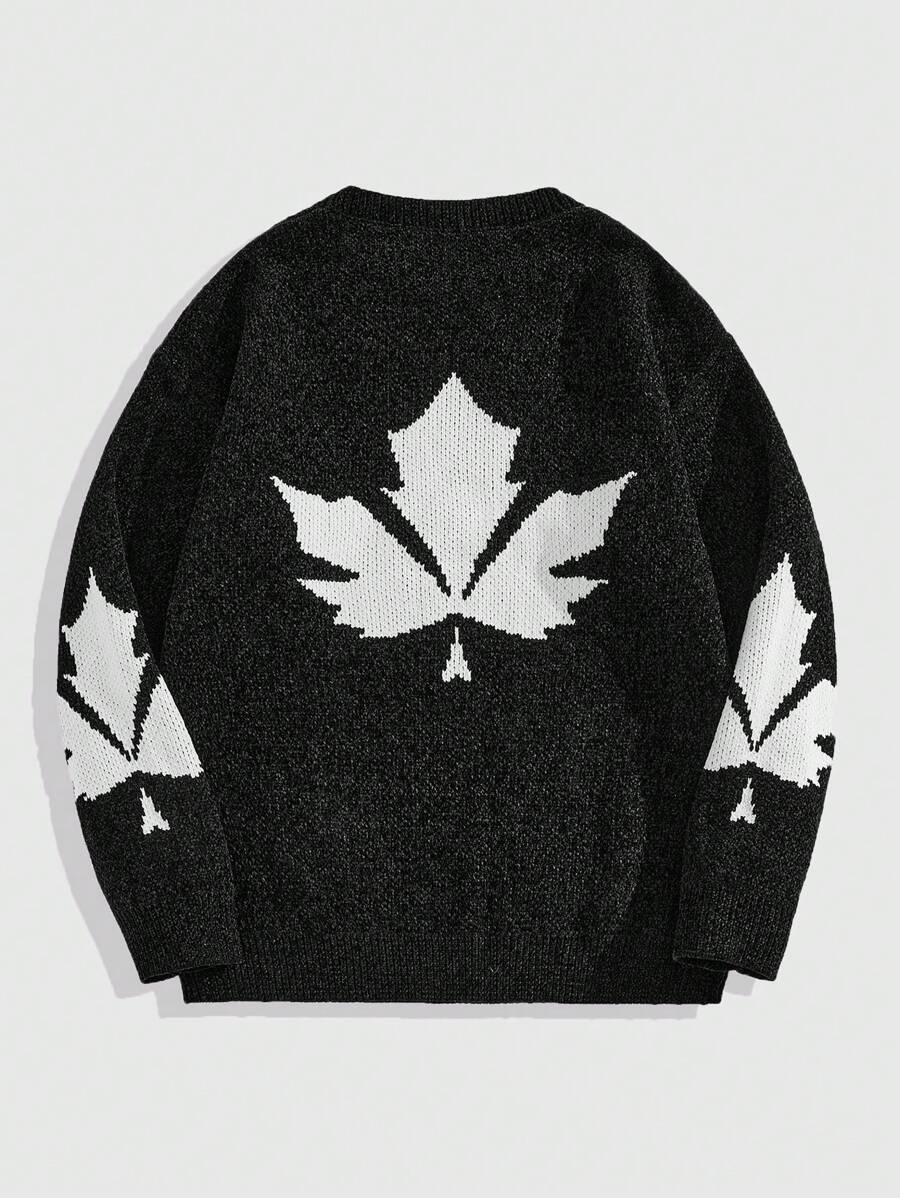 Street Life Maglione da uomo girocollo, in lavorazione jacquard a foglia d'acero, effetto morbido e peloso, stile alla moda americano
