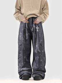 Street Life Pantaloni cargo da uomo con laccetto in vita, gamba ampia e stampa Tintura a nodi a incrocio