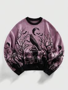 Street Life Maglione da uomo con ricamo di rami scuri e corvi