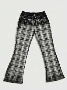 Street Life Pantaloni casual da uomo con vita con coulisse, tasche e fantasia a quadri