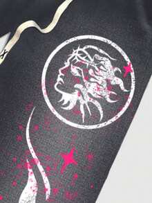 Street Life Pantaloni sportivi casual larghi da uomo con vita con coulisse, stampa con slogan e volto