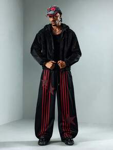 Street Life Pantaloni della tuta casual larghi da uomo con vita con coulisse e stampa a stelle a cinque punte a righe