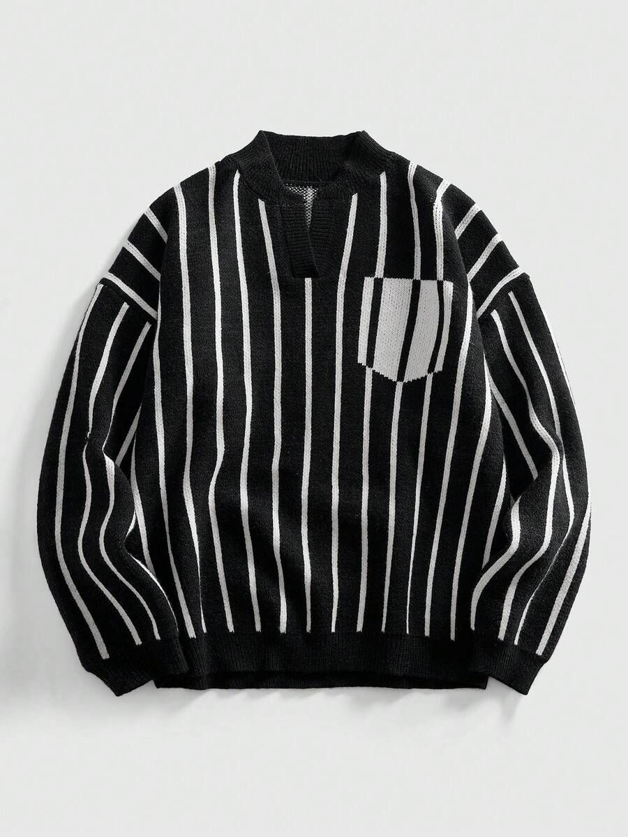 Street Life Maglione lavorato a maglia con colletto ricamato, moda di strada per uomo