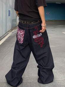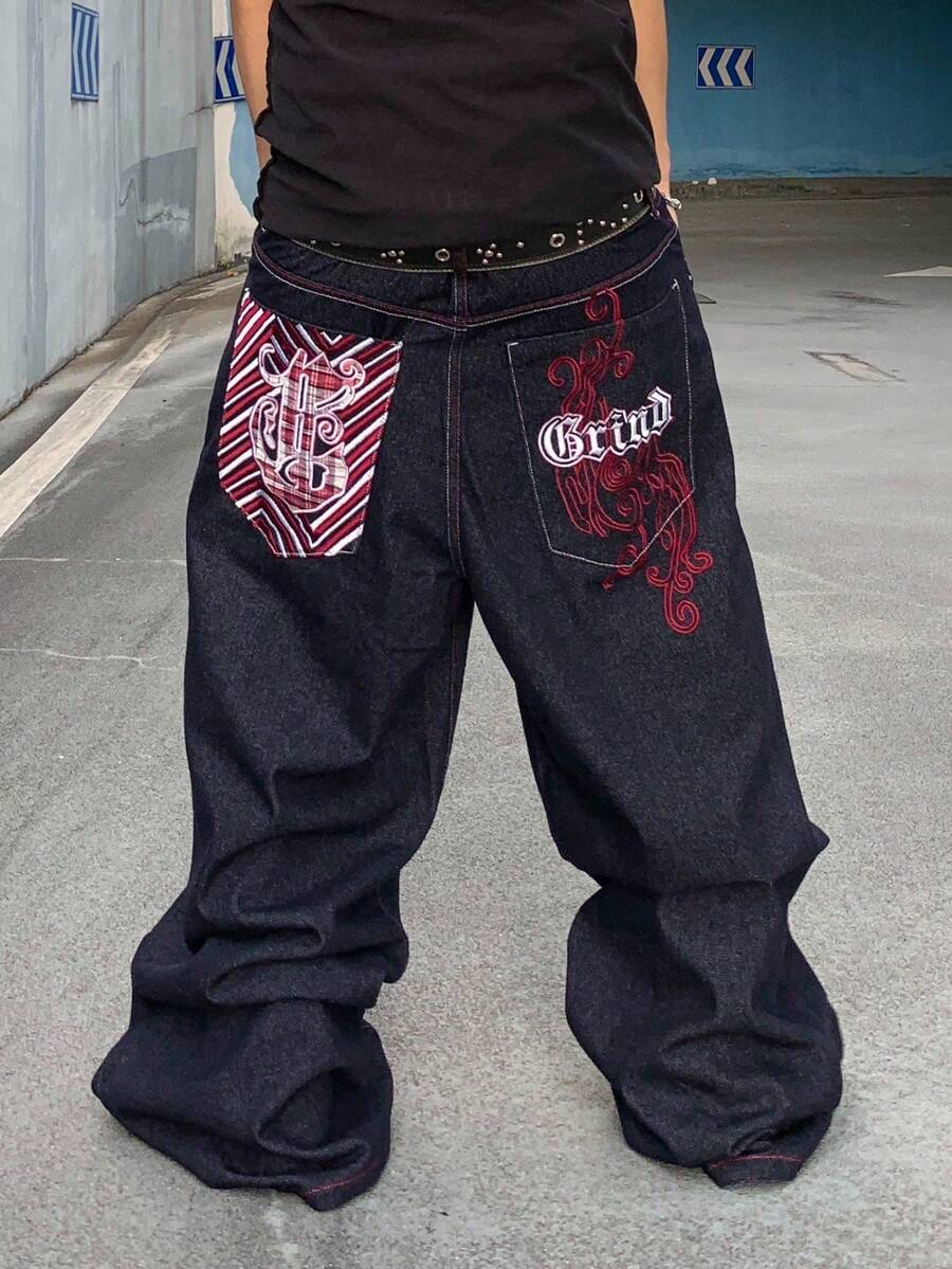 Street Life Jeans larghi e comodi da uomo con tasche ricamate