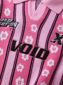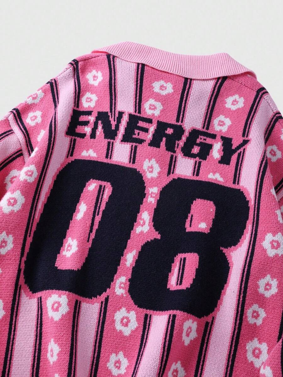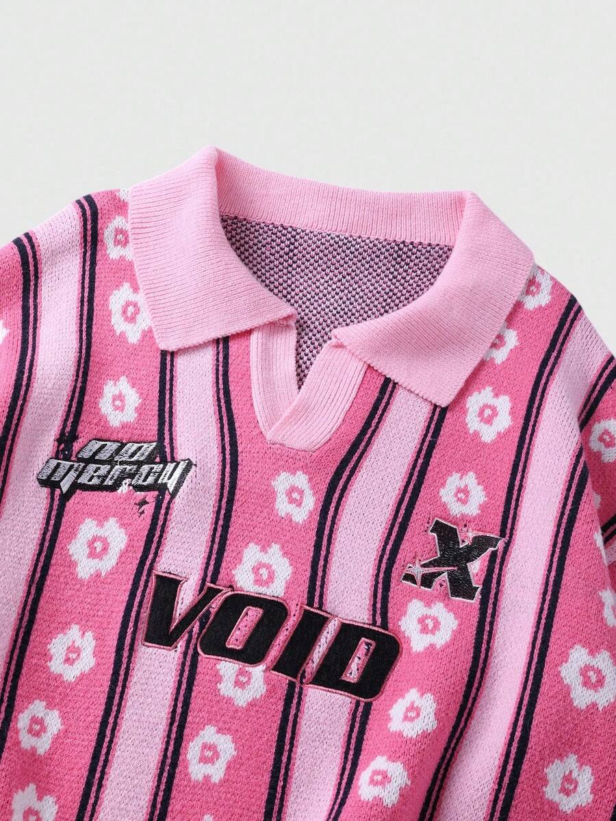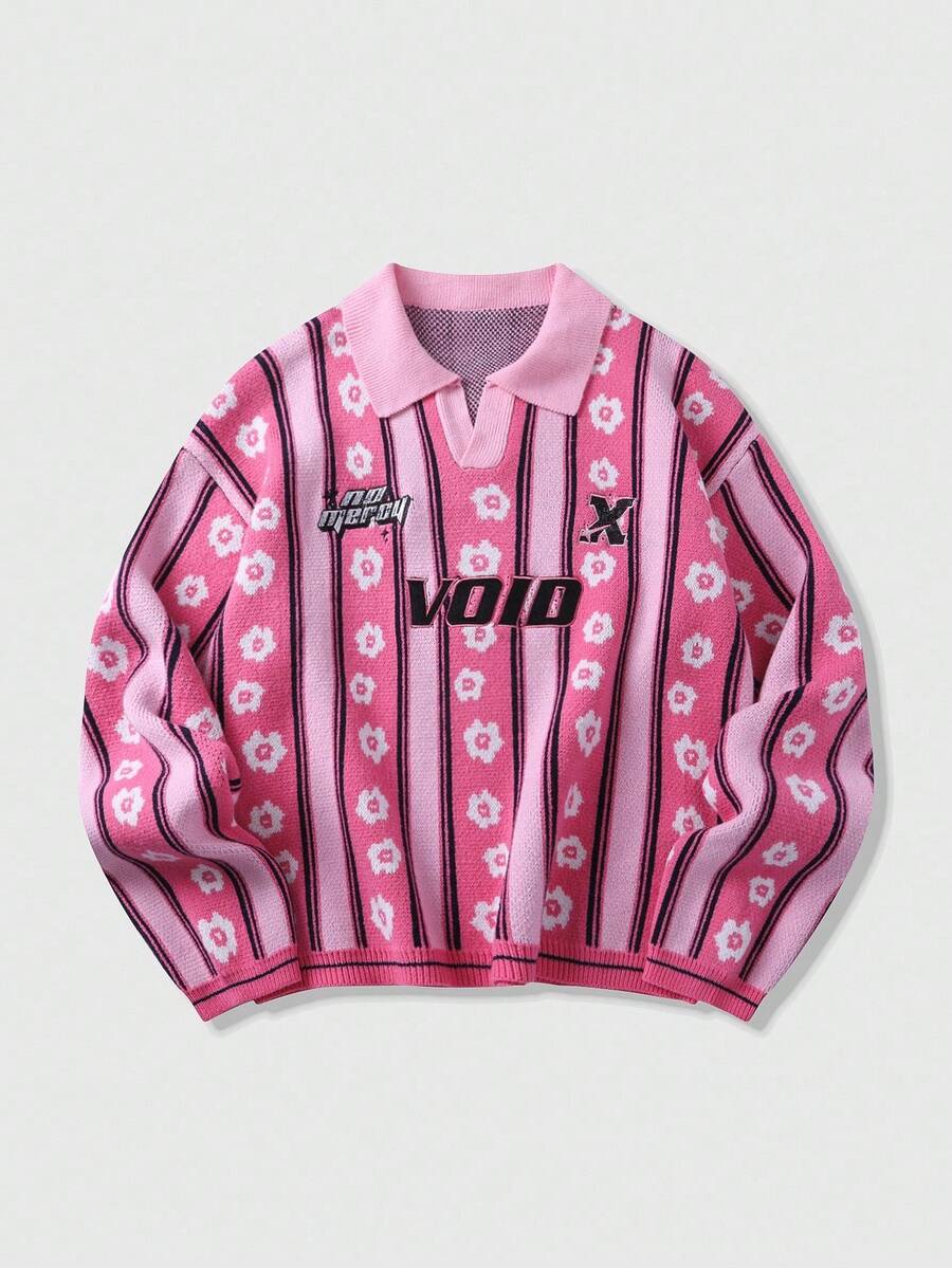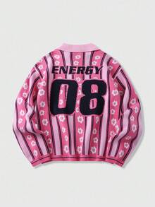 Street Life Maglione da uomo in maglia jacquard a righe ricamato, stile oversize corto, autunno inverno